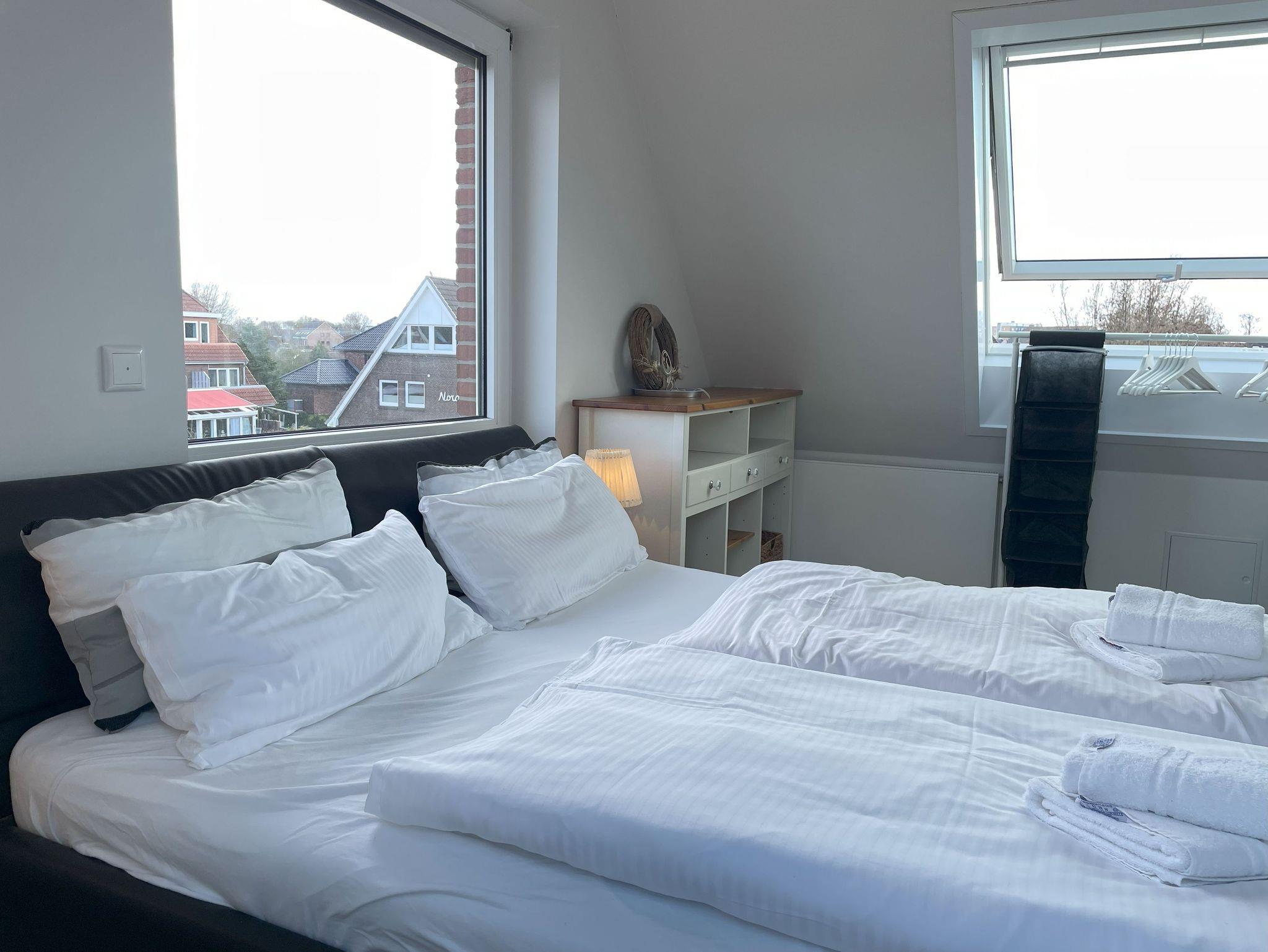 • Sie benötigen 3 Schlafzimmer? Und möchten gern den wunderschönen Ausblick auf den Deich, die Nordsee, Segler, Krabbenkutter und Ausflugsschiffe genießen? Dann ist unsere Wohnung Captain's Look-Out im 2.OG ideal für Sie! Sie haben das gesamte 2. OG für sich. Eine nagelneue Einbauküche mit allem, was Sie brauchen, 4 neue große Velux-Fenster (mit Außenjalousien!) für ganz viel Helligkeit und Weitblick, 2 Bäder (eins ganz neu). Und der Liebling unserer Gäste: der schöne Wintergarten mit direktem Blick auf den Deich. Vergessen Sie Ihr Fernglas nicht!