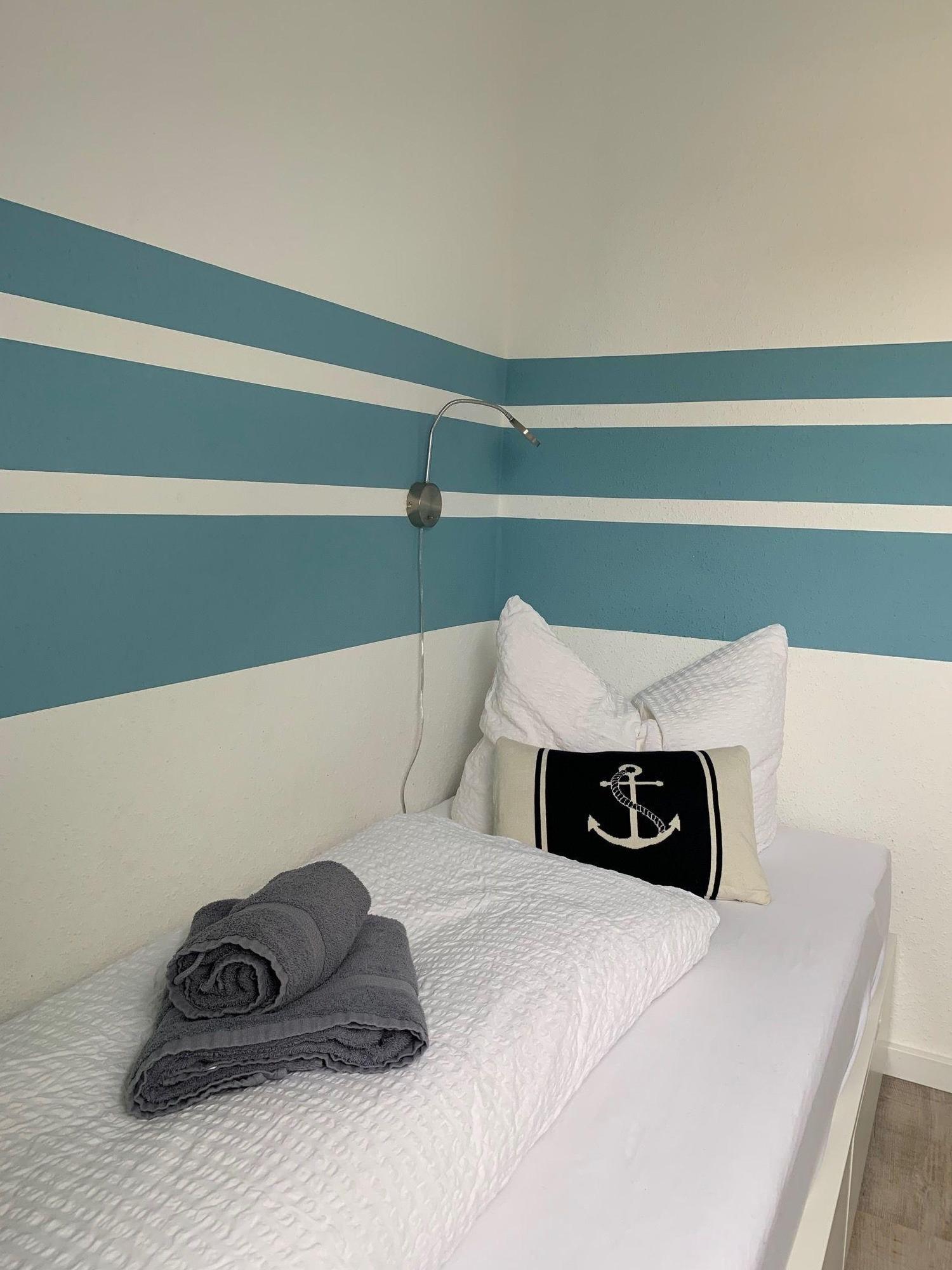 Die Ferienwohnung "Amrum" verfügt über einen Wohnraum mit vollständig ausgestatteter Küchenzeile, 2 separate Schlafzimmer (Doppelbett + Kinder Gitterbett / 2 Einzelbetten), Duschbad sowie einen Balkon.