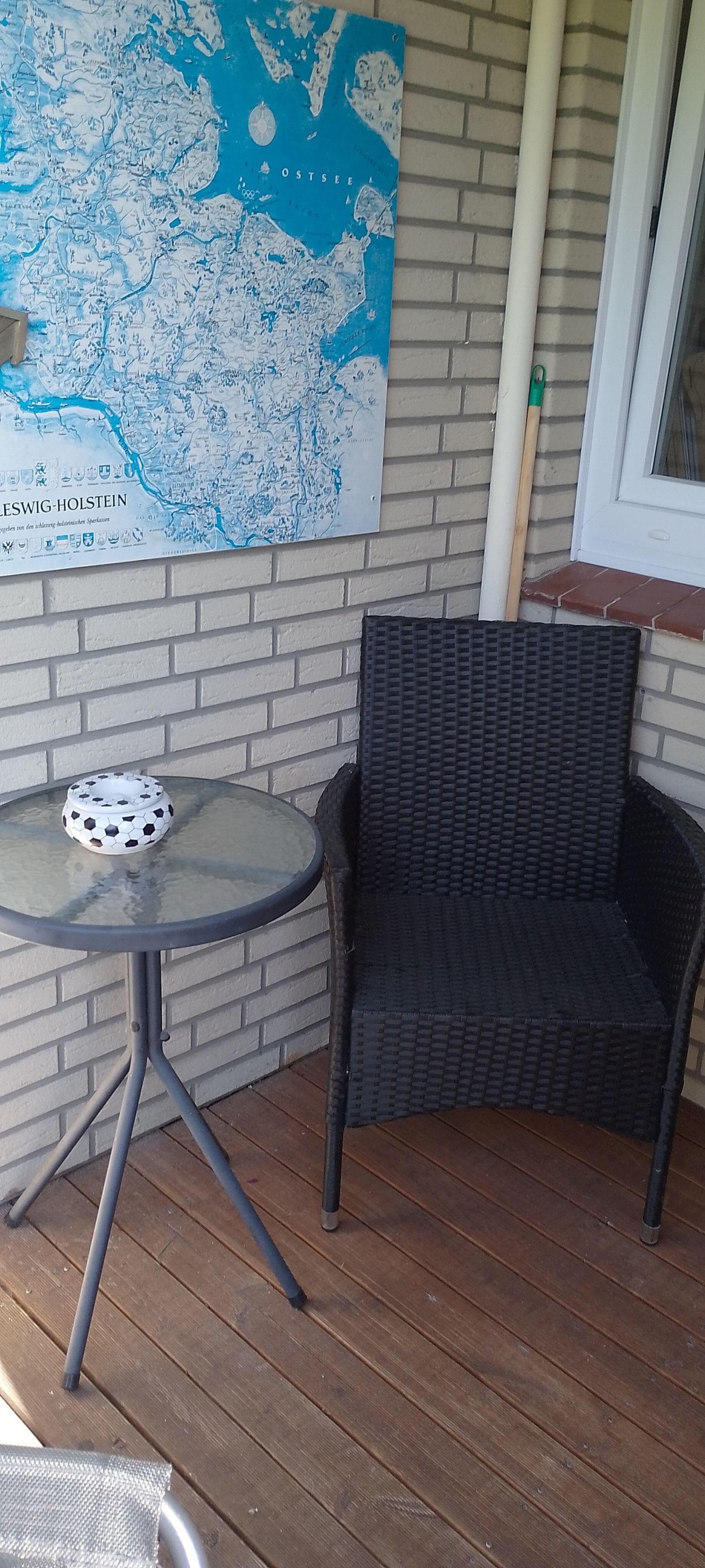 Eine überdachte Raucherecke sowie ein Pkw Stellplatz gehören zur Wohnung.