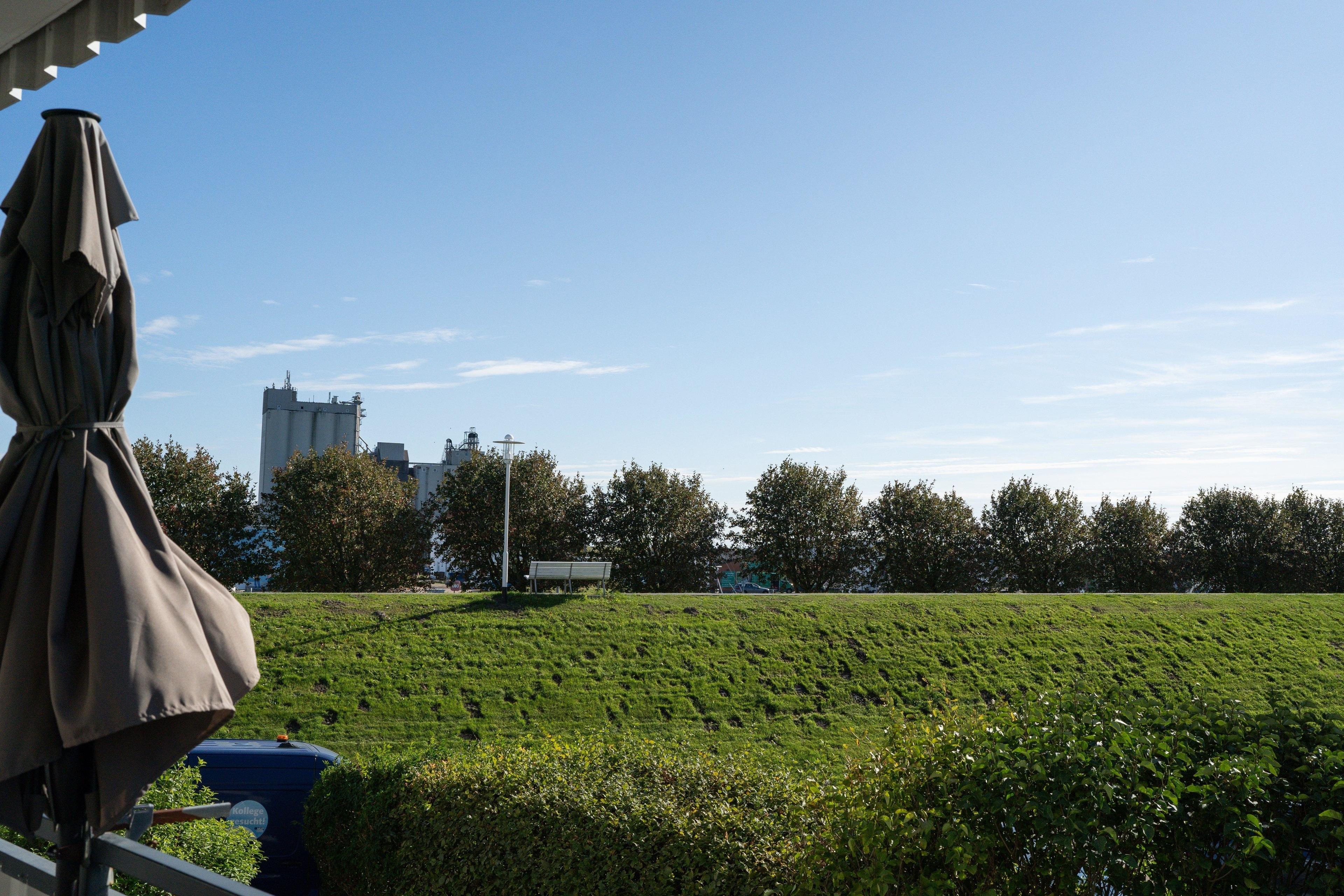 Der Balkon bietet einen direkten Blick auf den Fischereihafen von Büsum.