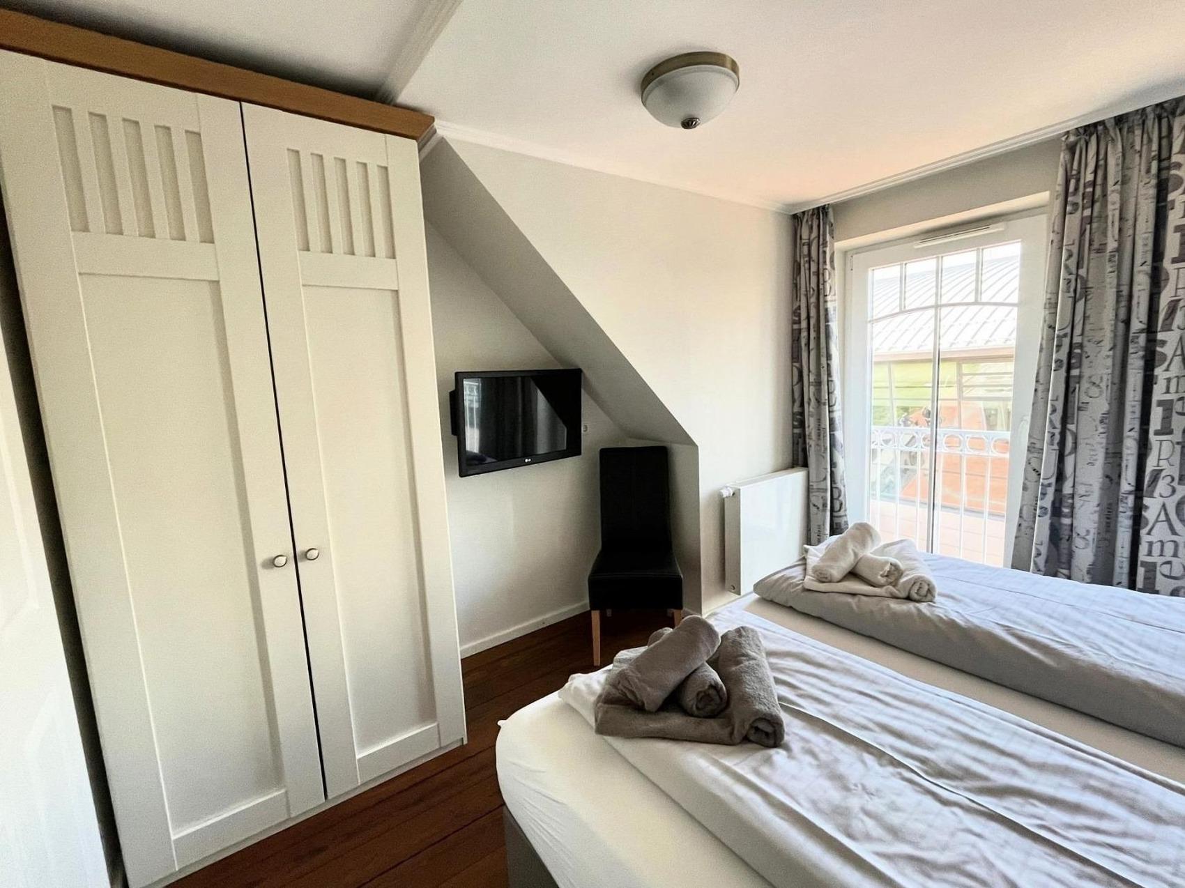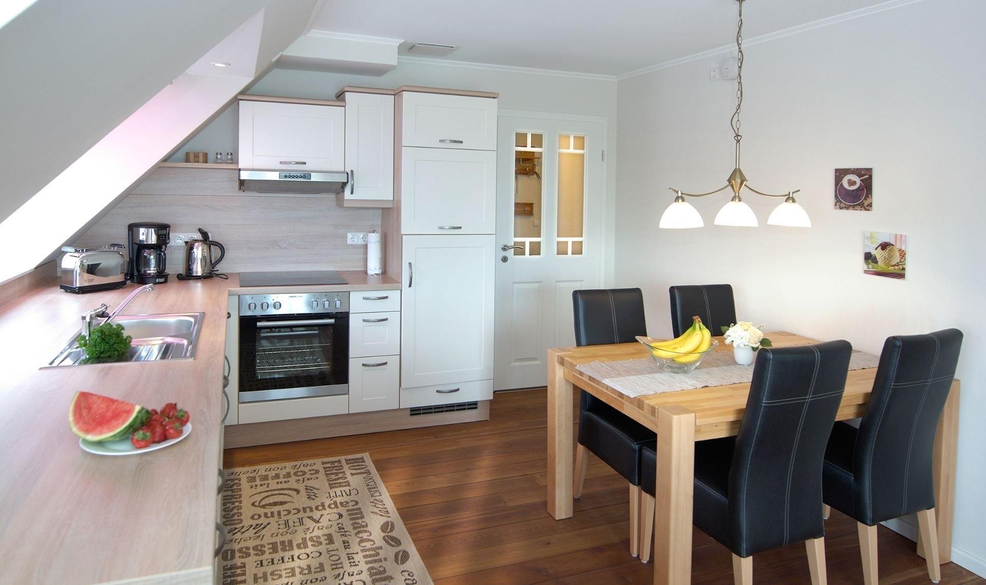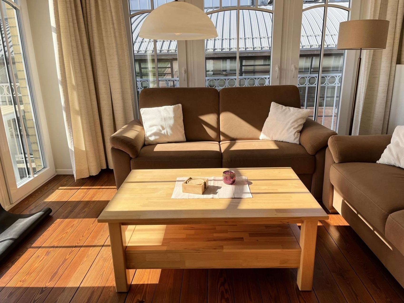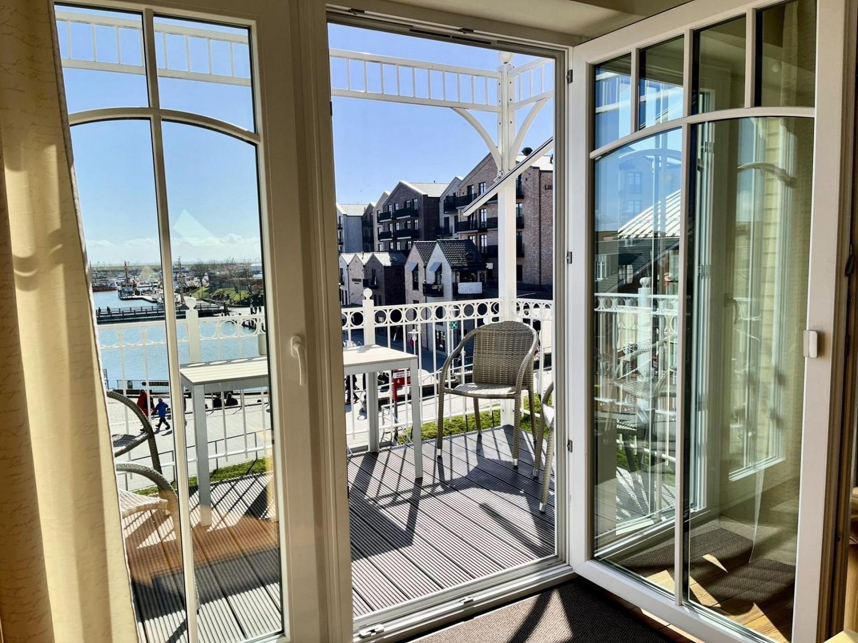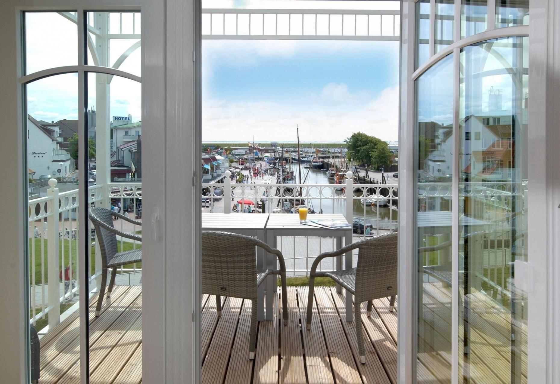 Diese Ferienwohnung liegt im dritten Stock des Hauses und bietet unseren Gästen mit großen Fenstern in Süd- und in Südwestausrichtung lichtdurchflutete Räume und einen herrlichen Blick auf den Museumshafen. Urige Holzdielen im kombinierten Wohn- und Esszimmer und den Schlafzimmern erzeugen ein exklusives Ambiente. Die hochwertige Schallisolierung der Räume sorgt für Ruhe und Entspannung. Ganz besonderen Komfort bieten wir mit einer hochwertigen Ausstattung der Ferienwohnung und stufenfreien Zugängen, insbesondere mittels Aufzug und praktischer Walk-In-Dusche im Bad. Wer es gemütlich mag, kann den Tag mit einem entspannenden heißen Bad in der Badewanne ausklingen lassen. Auf dem möblierten großzügigen Balkon, der mit einer Markise ausgestattet ist, können Sie bei schönem Wetter nahezu den ganzen Tag die Sonne genießen. Sie werden sich bei uns zu jeder Jahreszeit und bei jedem Wetter wohl fühlen.