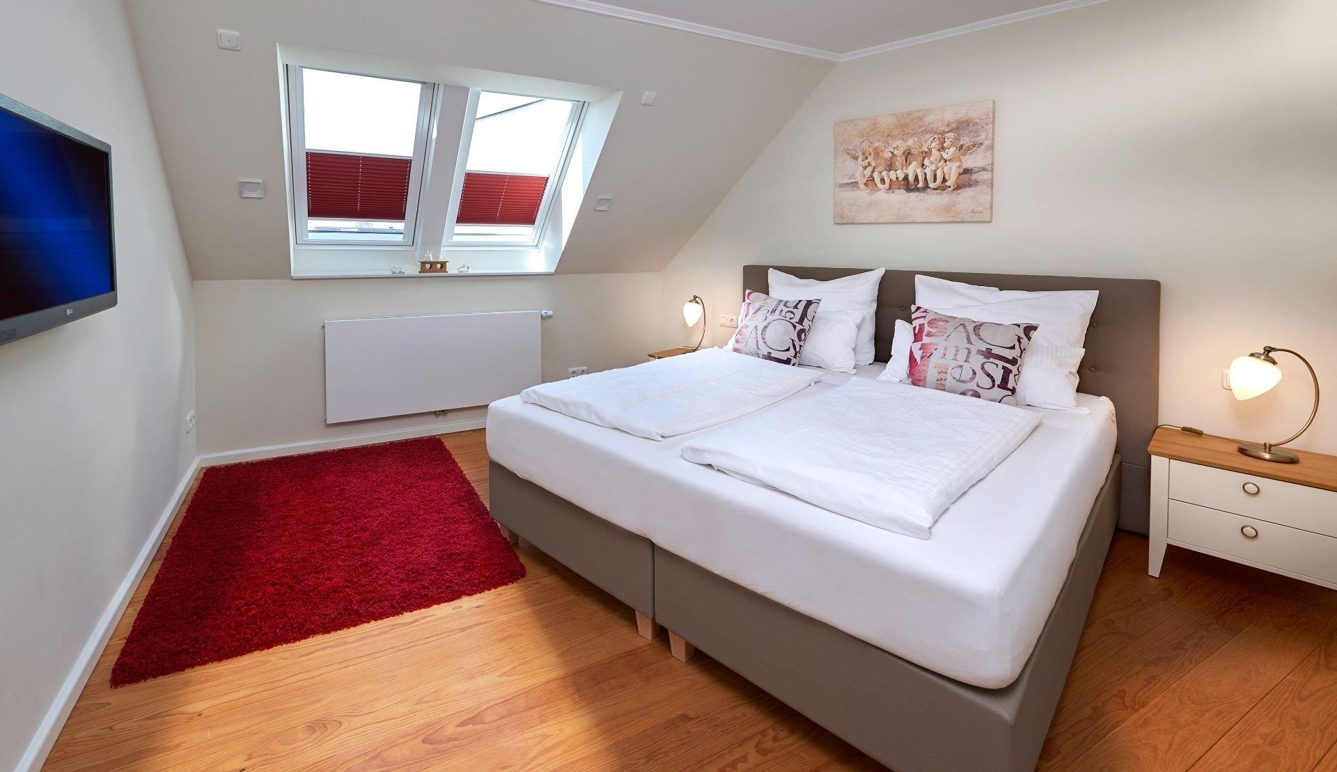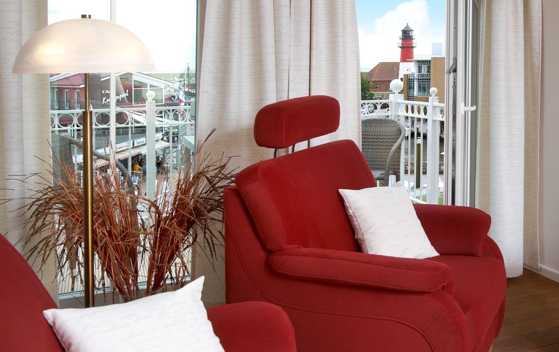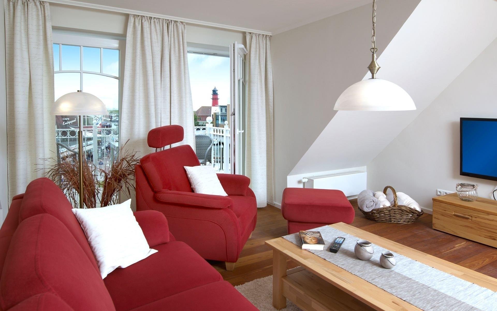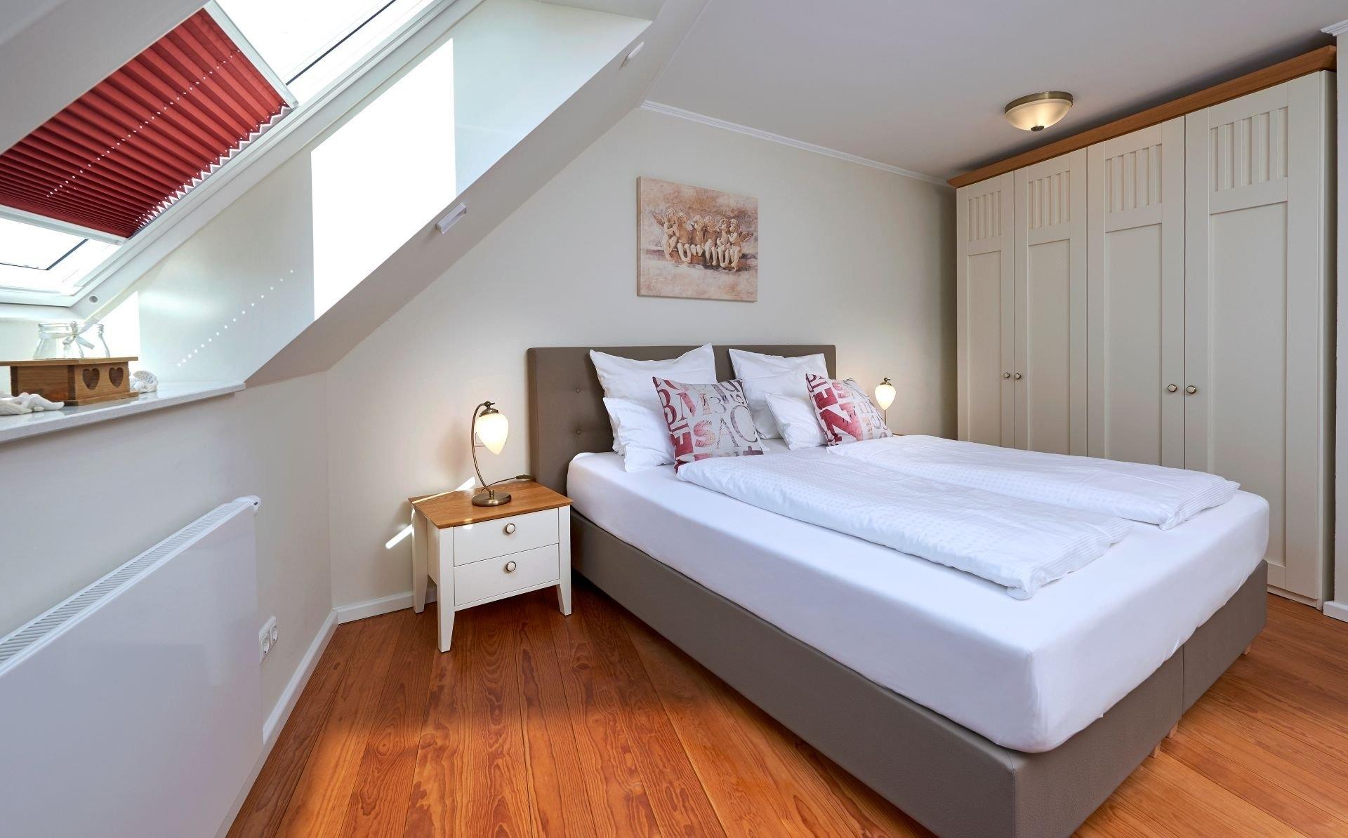 Die schöne Ferienwohnung im Dachgeschoss ist mit einem sehr großzügigen Wohn- und Essbereich ausgestattet. Mit großen Fenstern in Südausrichtung bieten wir unseren Gästen lichtdurchflutete Räume und einen schönen Ausblick auf den Museumshafen. Urige Holzdielen sowie eine hochwertige Schallisolierung bieten eine angenehme und erholsame Atmosphäre. Ganz besonderen Komfort bieten wir mit einer hochwertigen Ausstattung der Ferienwohnung und stufenfreien Zugängen, insbesondere mittels Aufzug und praktischer Walk-In-Dusche im Bad. Auf dem mit einer Markise ausgestatteten möblierten Balkon können Sie bei schönem Wetter bis zum frühen Abend die Sonne genießen und das bunte Treiben in der Fußgängerzone und um den Museumshafen beobachten. Sie werden sich zu jeder Jahreszeit und bei jedem Wetter bei uns wohl fühlen.