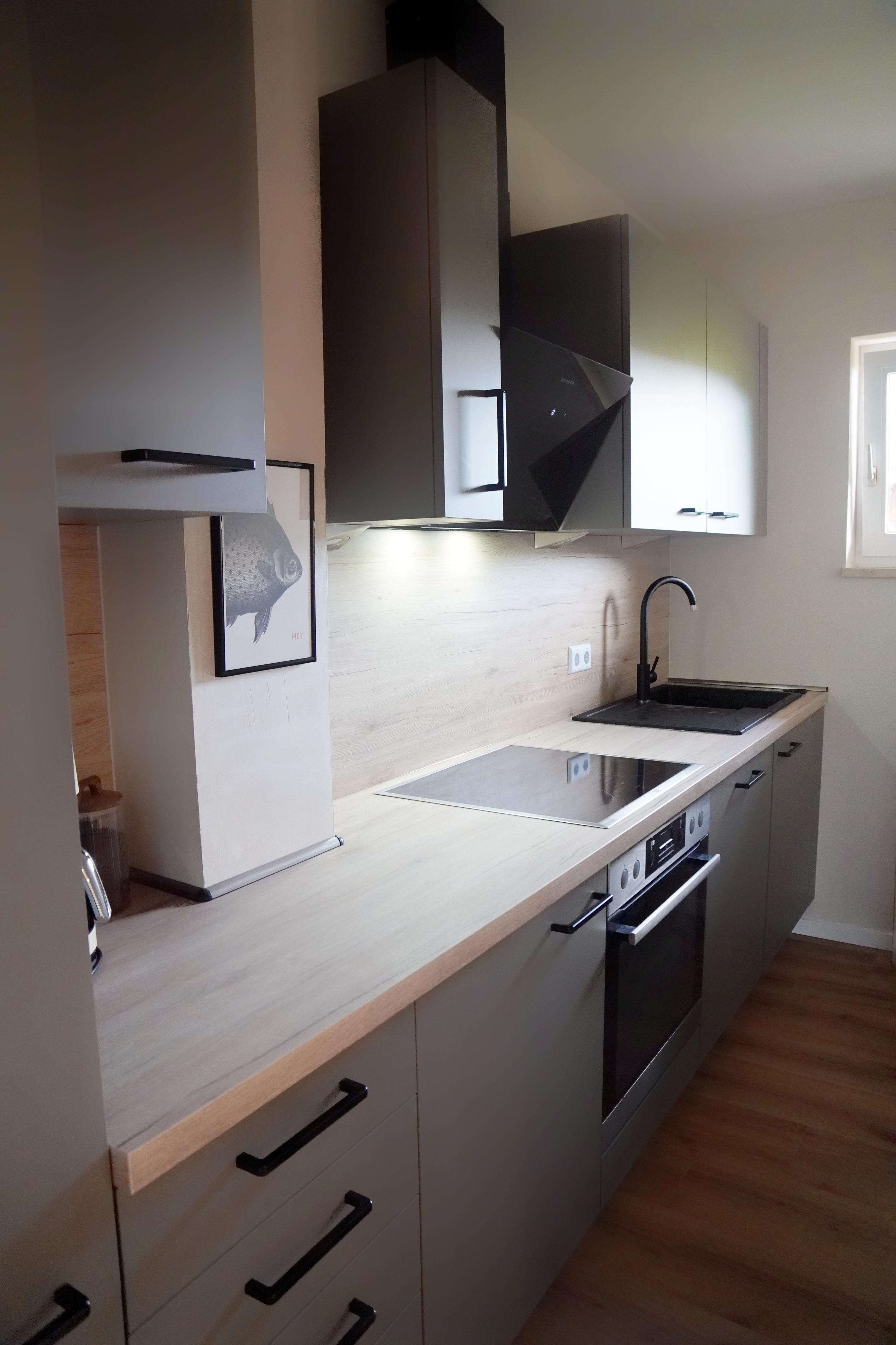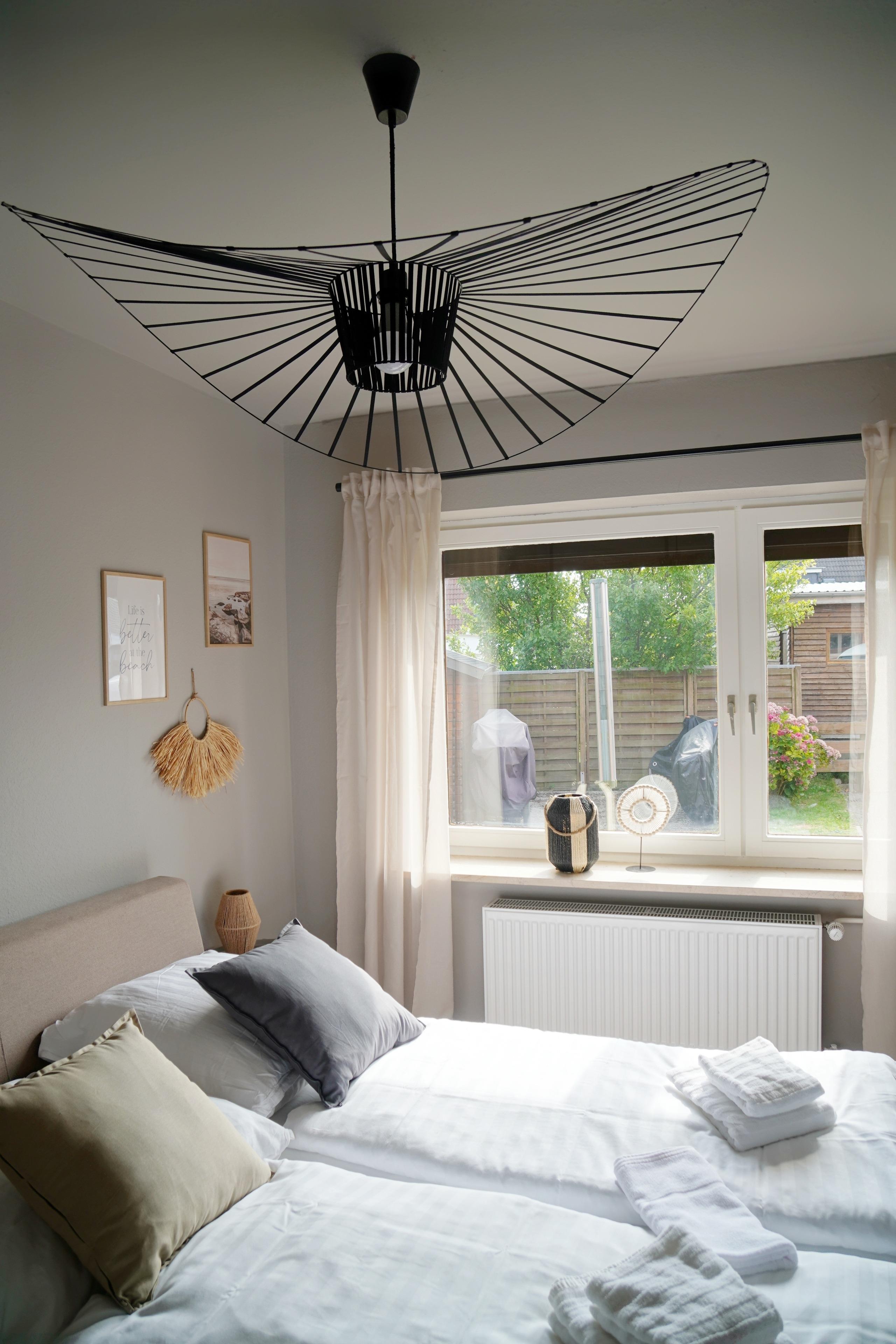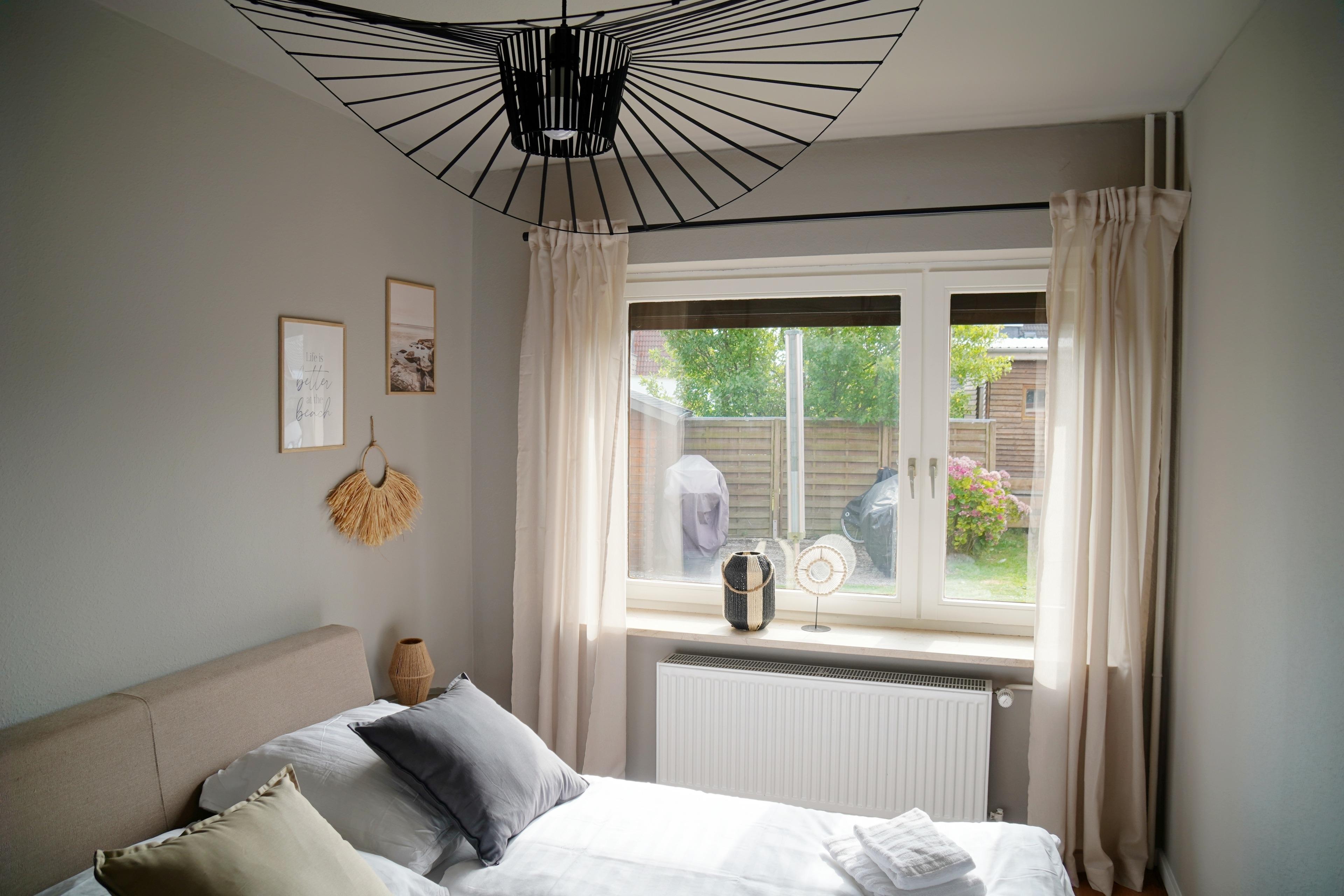 Zwei gemütliche Schlafzimmer bieten Platz für Familie oder Freunde. Die Einrichtung kombiniert warme Holztöne, Seefahrer-Details und Industrial-Elemente aus Metall. Die Küche ist komplett ausgestattet, das Bad modern gestaltet.