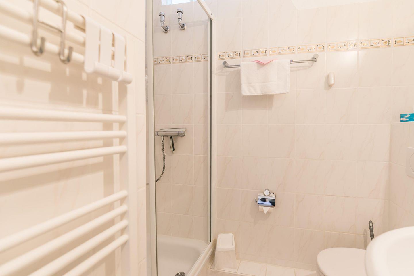 Duschbad , Duschabtrennung, WC, Handtuchwärmer