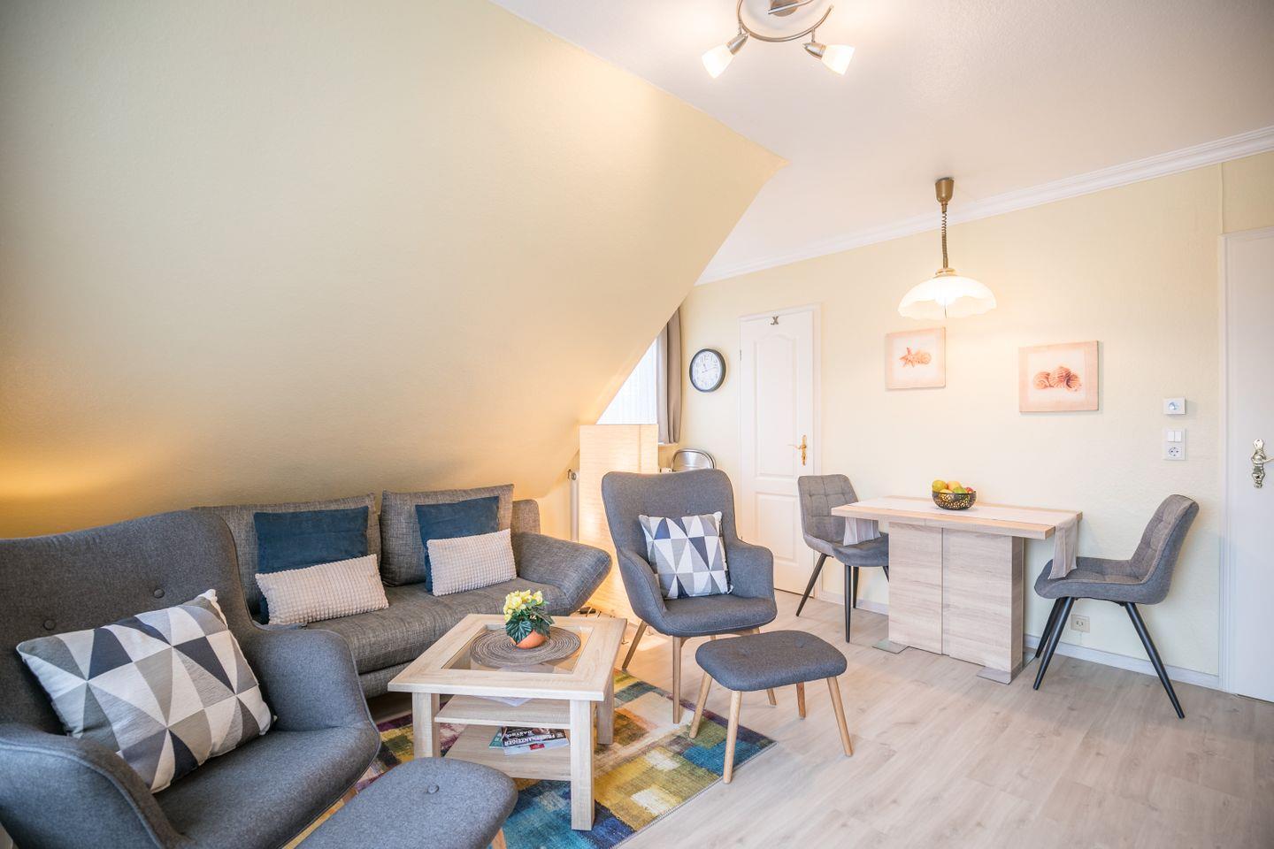 Dank der sehr guten, zentralen Lage erreichen Sie den Strand, die Fußgängerzone, den Museumshafen und diverse Einkaufsmöglichkeiten in wenigen Minuten zu Fuß.