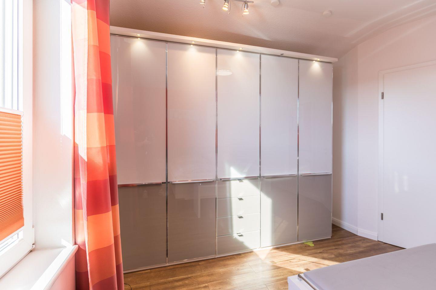 Boxspringdoppelbett mit durchgehender Matratze 1,80x2,00m, Nachtkonsolen, Kleiderschrank