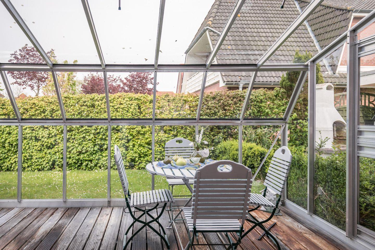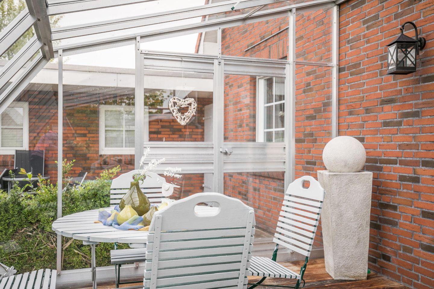Der vom Wohnzimmer abgehende Wintergarten, mit Strandkorb, ist etwas für Genießer und Leseratten.