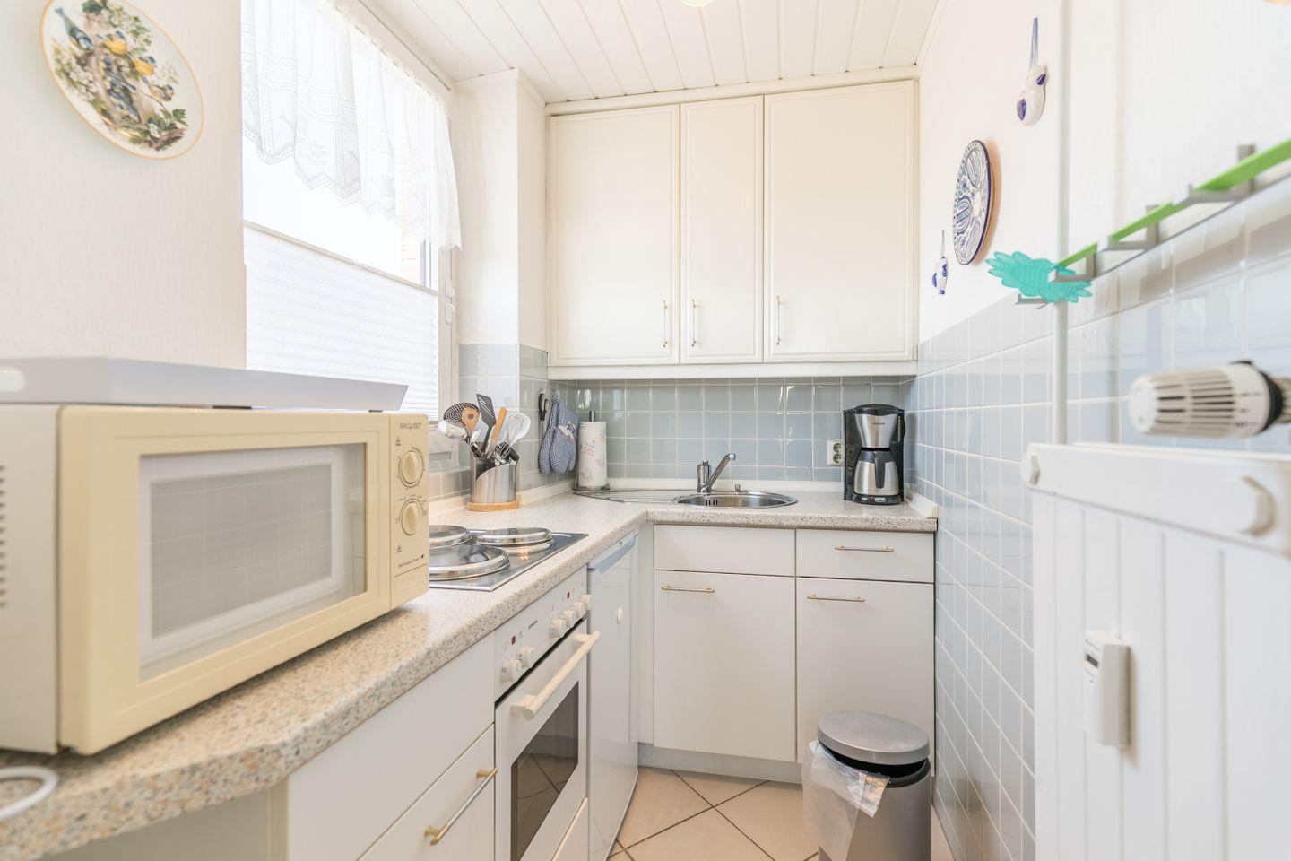 Die Küche und das Bad sind mit dem notwendigsten ausgestattet für einen unkomplizierten Urlaub bei uns in Büsum!