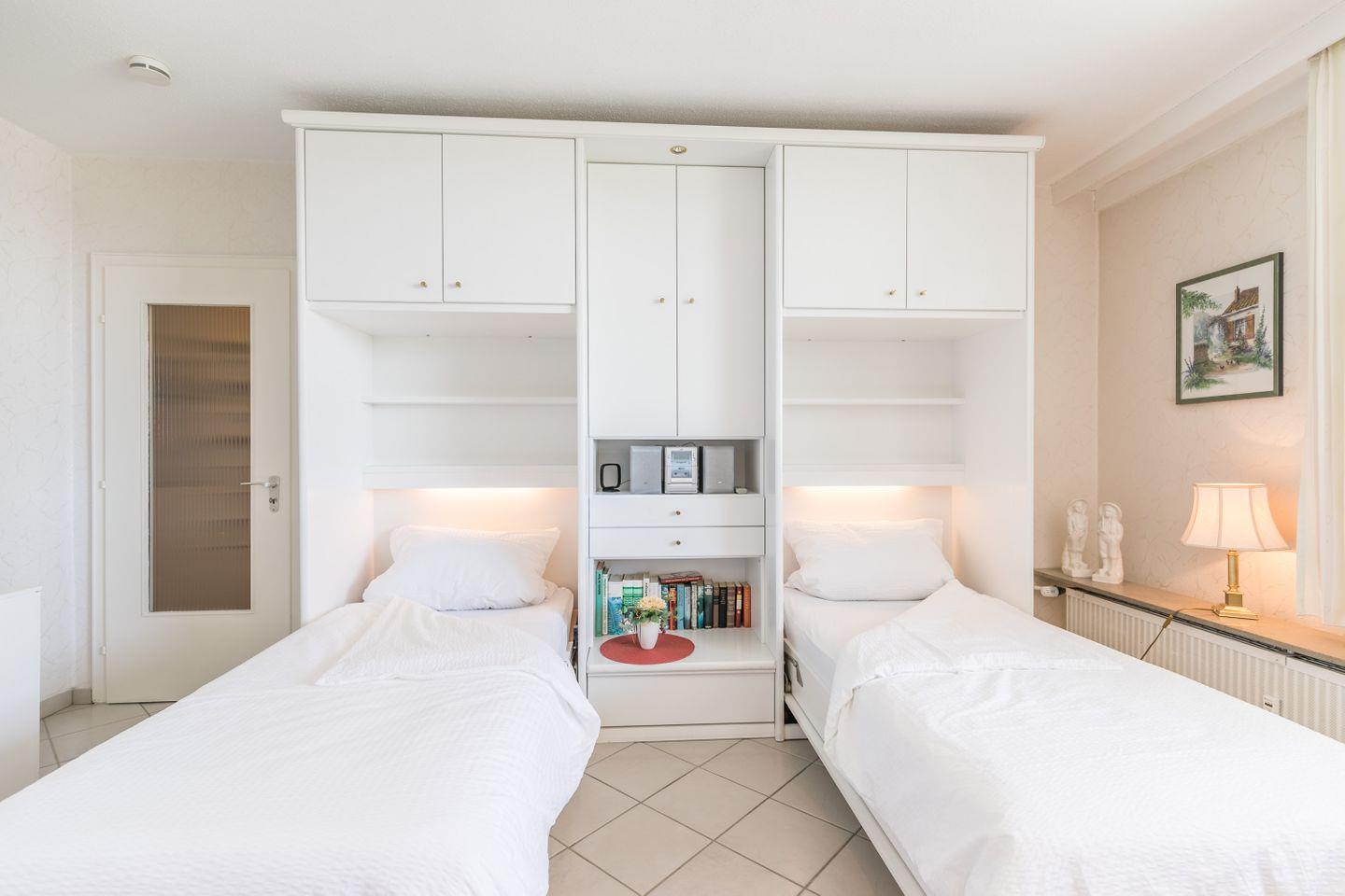 Das Wohnzimmer ist mit einem praktischen Schrankbett (2 Einzelbetten) ausgestattet, das tagsüber als gemütlicher Wohnbereich dient.