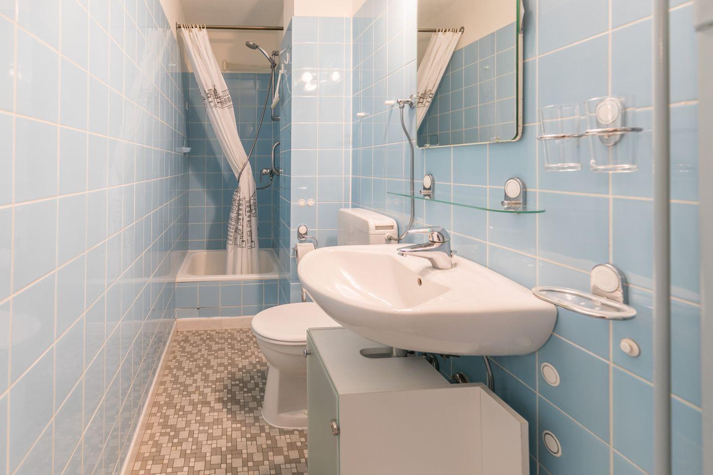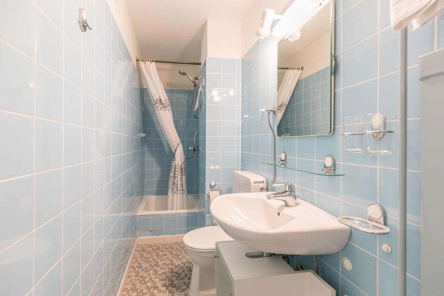 Duschbad, WC, Waschbecken, Spiegel, Abluft