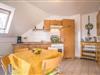 offene Küche mit Essplatz, Küchenzeile mit Herd und Backofen, Mikrowelle, Kühlschrank ohne Gefrierfach, Geschirrspüler, Wasserkocher, Toaster
