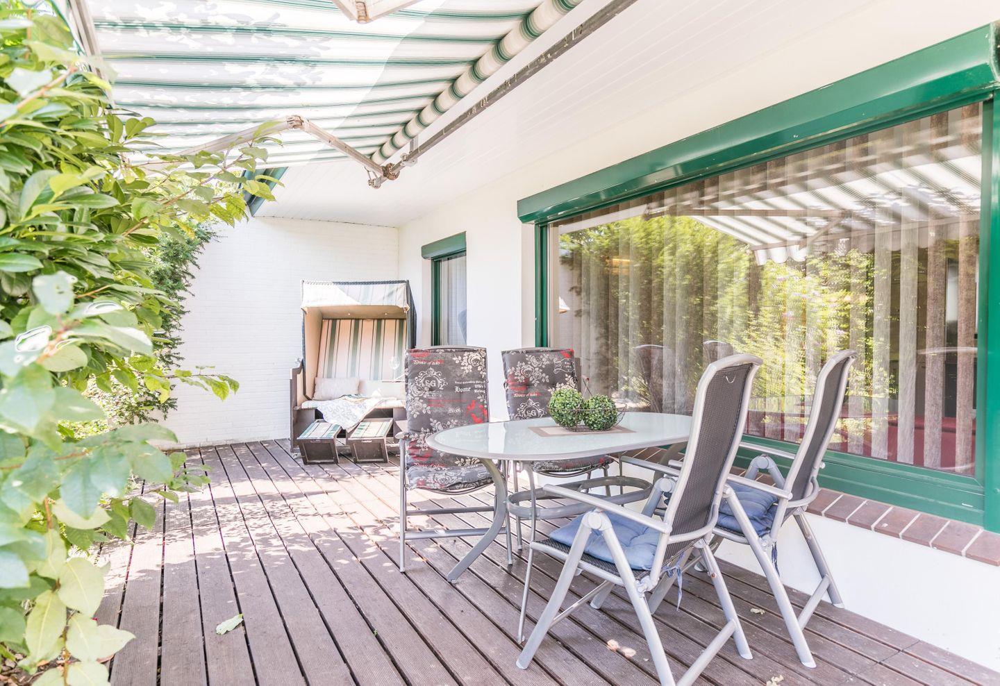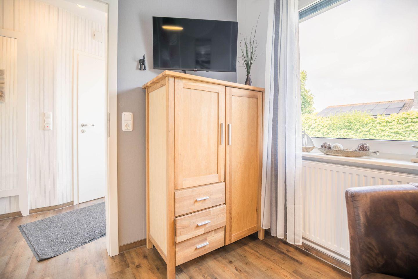 W-LAN, pflegeleichte Hartböden, sämtliche Räume mit Außenjalousien, überdachte Terrasse, Terrassenmöbel und Strandkorb, Waschmaschine, Wäschetrockner, Abstell- und Fahrradraum, 2 kostenfreie Parkplätze, Wäsche optional dazu buchbar