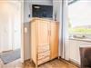 Doppelbett (2,00 m x 180,0 m), mit getrennten Matratzen, Lattenroste Kopf- und Fußteil verstellbar, Kleiderschrank 4-türig, Anrichte, Flachbild-TV, Fliegengitter, Nachttisch mit Nachtleuchte