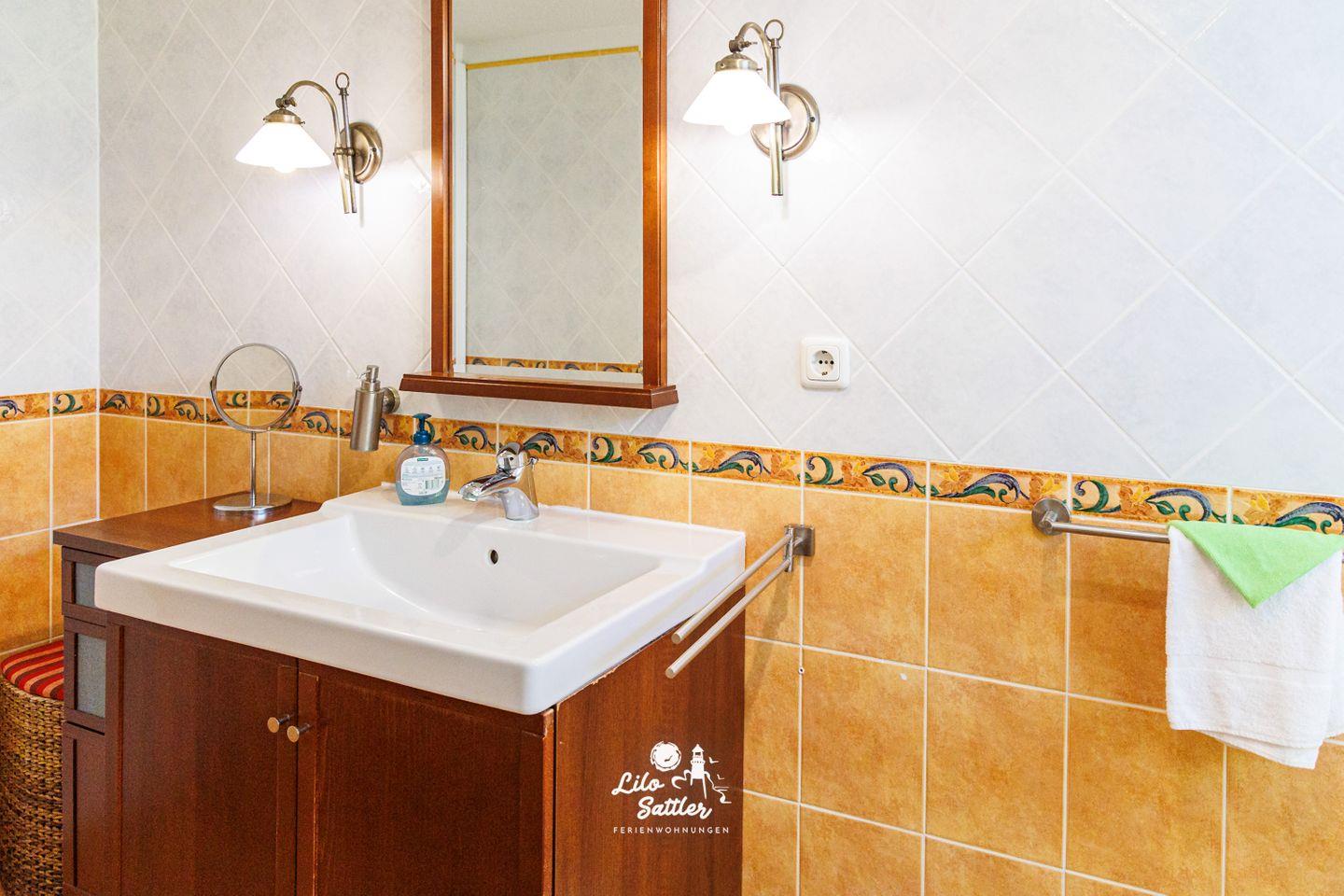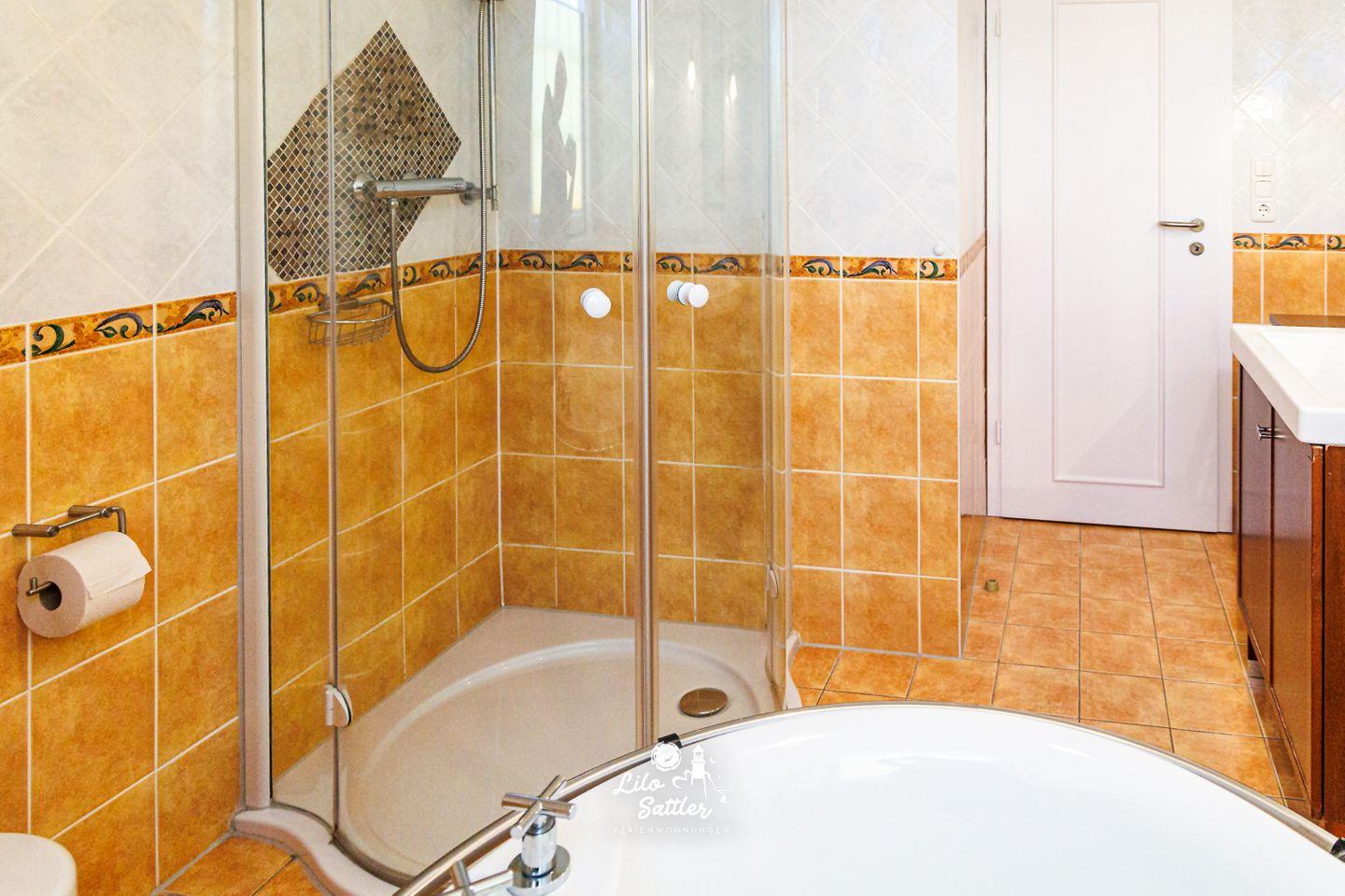 Dusche, Badewanne, WC, Fenster, Waschtisch