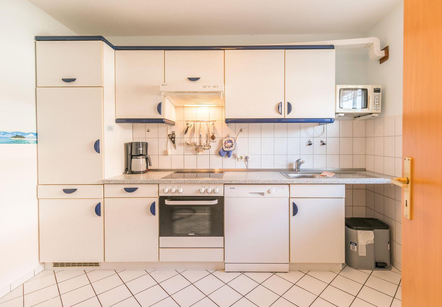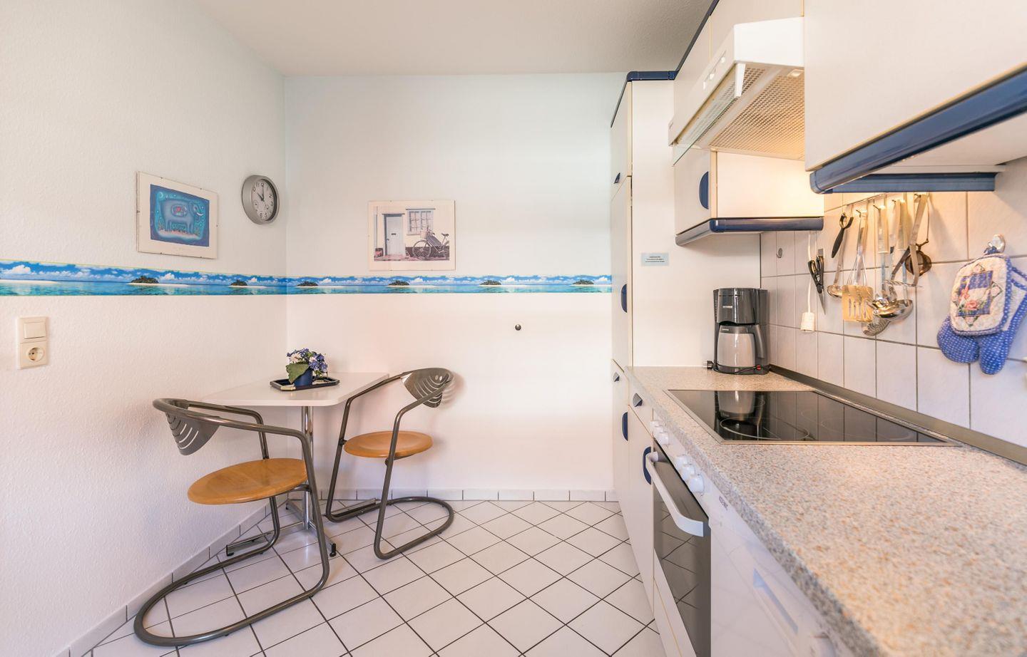 Einbauküche, Cerankochfeld, Dunstabzug, Geschirrspüler, Mikrowelle, Tisch, 2 Stühle