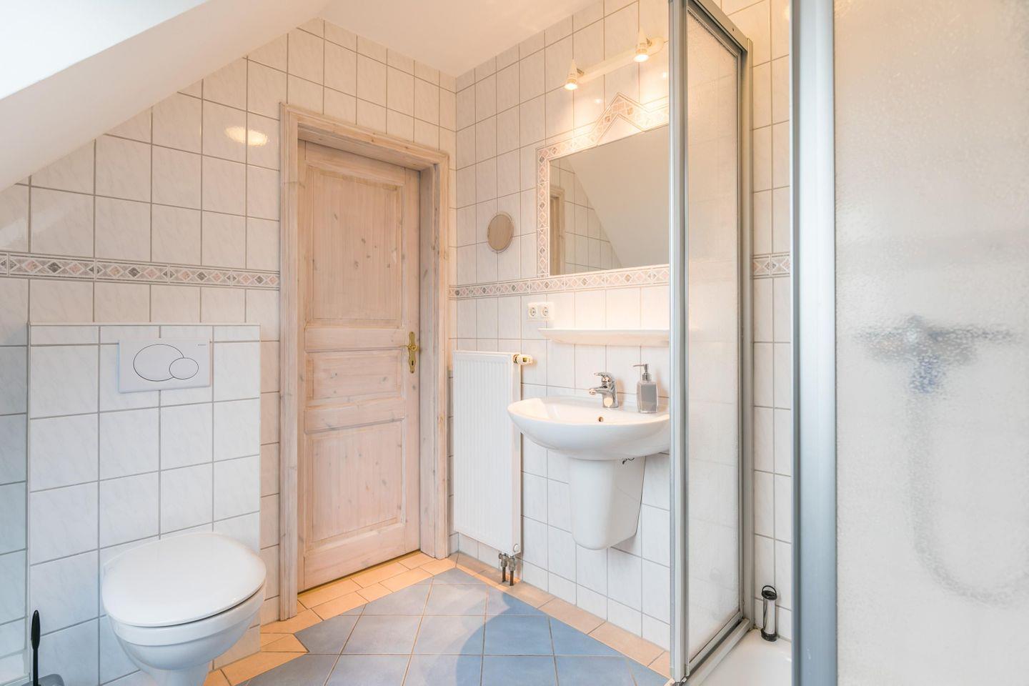 Duschbad, WC, Spiegel, Waschtisch