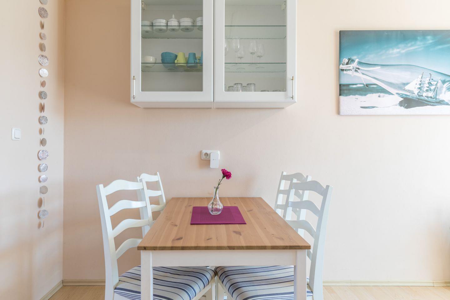Die 2-Zimmer-Ferienwohnung bietet Platz für bis zu 3 Personen: Ein heller Wohnbereich mit Zugang zum Süd-Balkon lädt vom Frühstück bis zum Sundowner zum Draußensitzen ein, die Küchenzeile erleichtert Selbstversorgung vom schnellen Kaffee bis zum Kochabend. Ein separates Schlafzimmer sorgt für erholsame Nächte, das Duschbad für einen entspannten Start in den Tag. WLAN und ein Privatparkplatz am Haus gehören dazu; Nichtraucher, keine Haustiere.