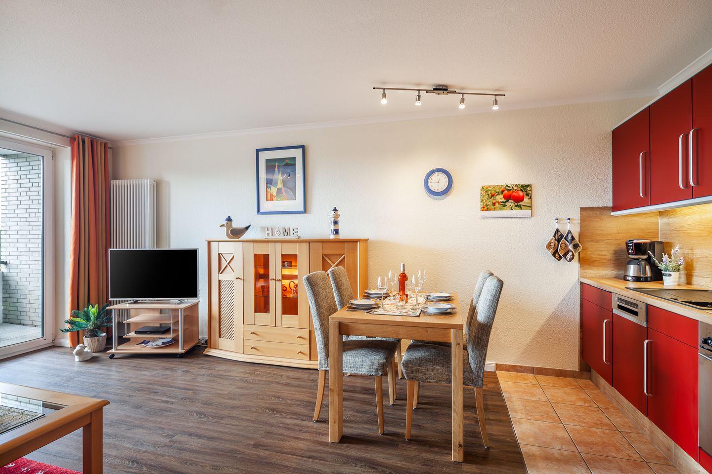 Die 50 m² große Nichtraucher-Ferienwohnung „Seewärts Wohnen 1.4“ in Büsum bietet Platz für 2 Personen und befindet sich im 1. Obergeschoss. Zur Ausstattung gehören ein offener Küchen-Wohnbereich, ein überdachter Balkon sowie ein bodengleiches Duschbad. WLAN, Sauna und ein Privatparkplatz sind vorhanden. Der Strand und das Meer liegen nur 200 Meter entfernt, Einkaufsmöglichkeiten sind fußläufig erreichbar.