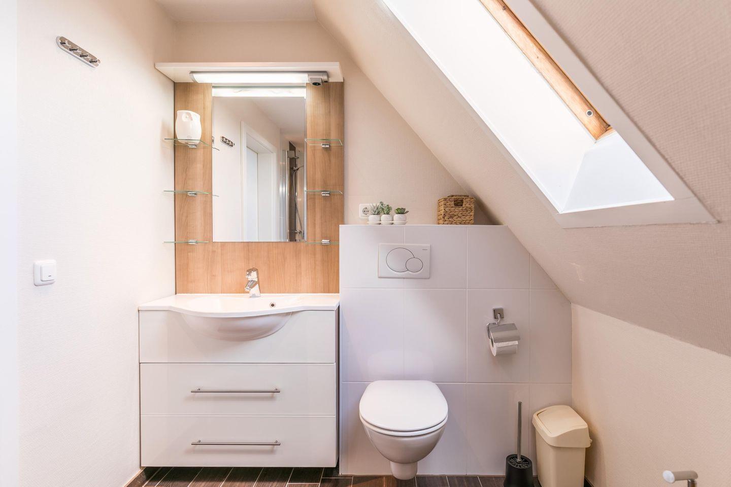 Dusche, WC, Waschbecken, Fenster, Föhn, Spiegel, Kosmetikspiegel, Handtuchtrockner