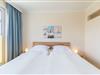 Doppelbett mit getrennten Matratzen (je 200x 90x 60cm), höhenverstellbarer Lattenrost (Kopf- und Fußteil) ,zwei Nachtkonsolen, Kleiderschrank 2-türig, Flachbild-TV LG 32 Zoll und Durchgang zum zweiten Balkon