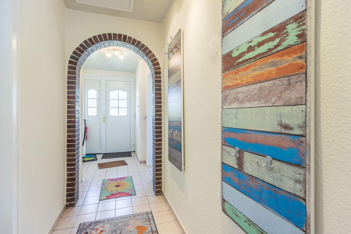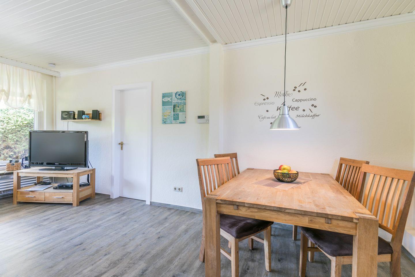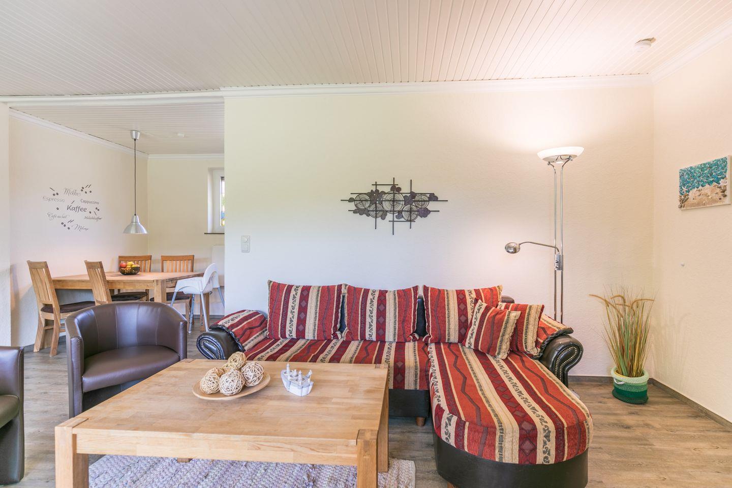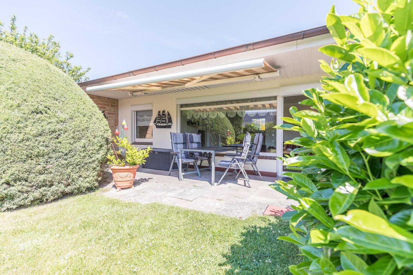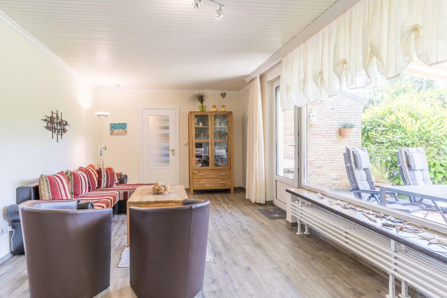 Der gemütliche Bungalow bietet Ihnen die beste Grundlage für einen entspannten Urlaub. Das Herz des Hauses ist das Wohnzimmer, mit offener Wohnküche, einem kleinen aber feinen Spielzimmer und dem Zugang zur eigenen Terrasse und Garten.