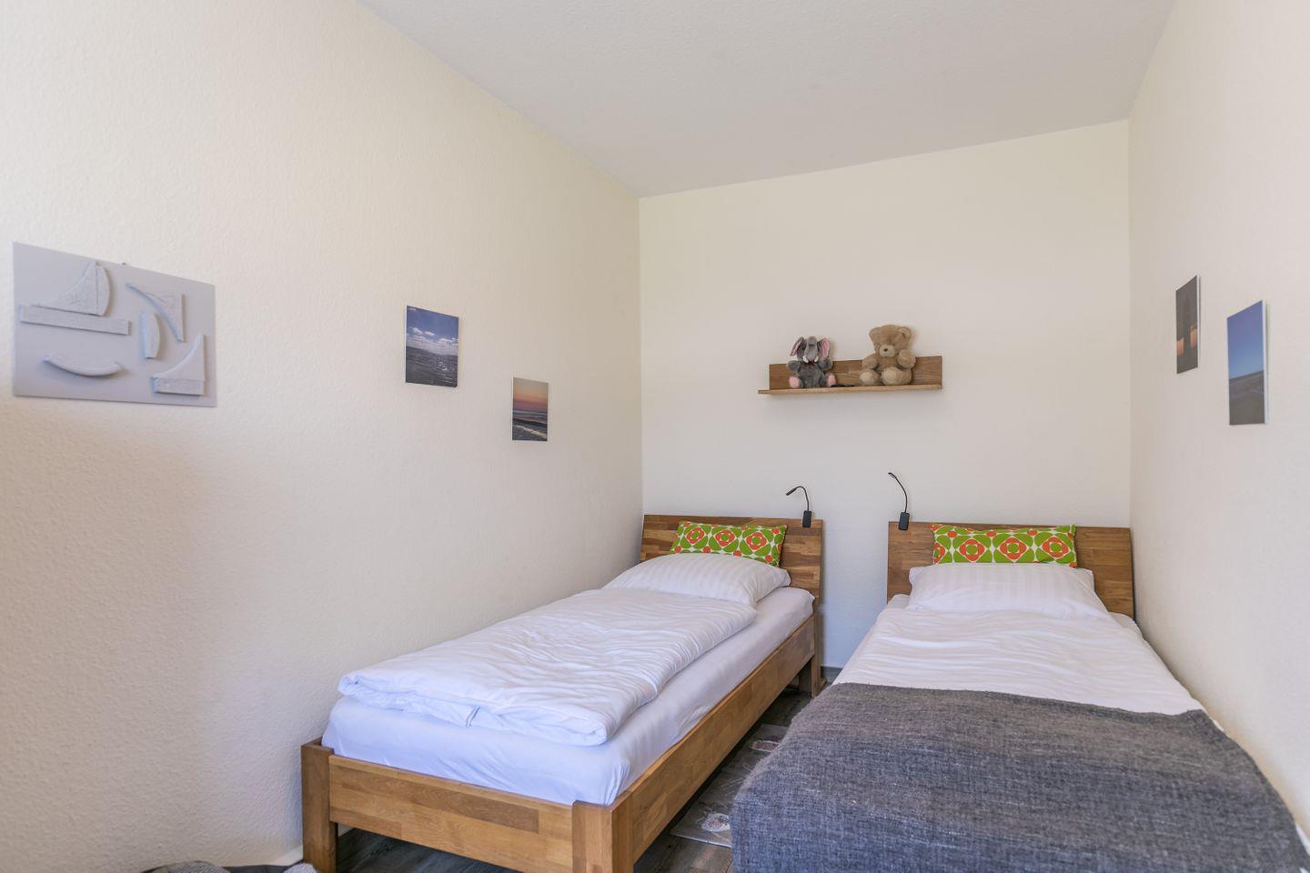 2 Einzelbetten (0,90 x 2,00m), Schrank, Leselampen, Außenjalousie, Fliegengitter
