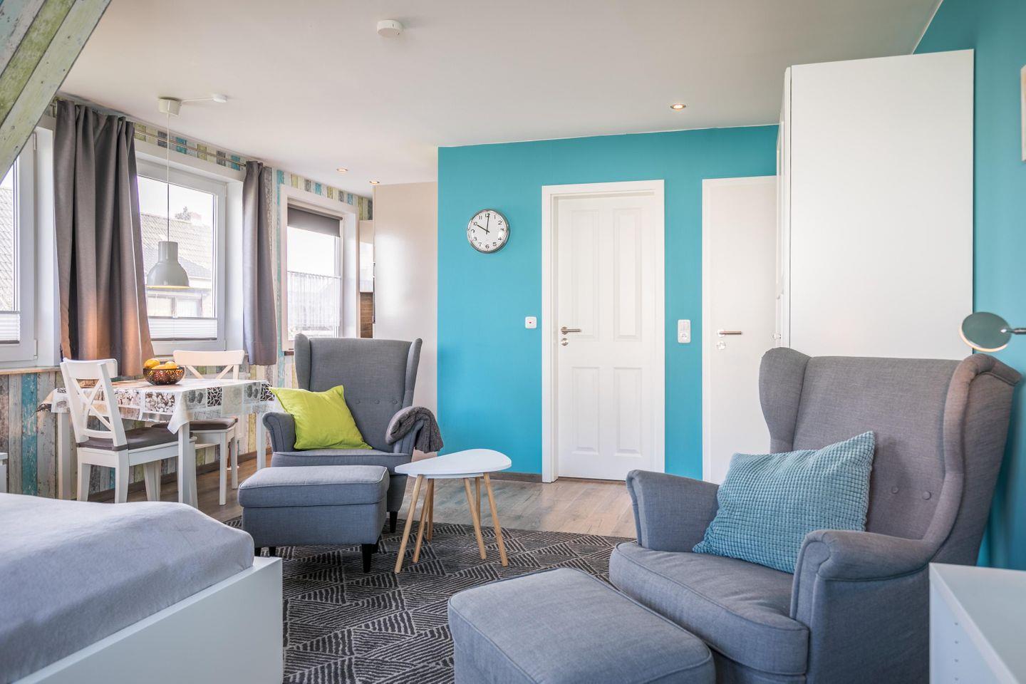 Ein kleines, saniertes Bad und eine neue, vollausgestattete Kochnische sind ebenfalls vorhanden. Die Unterkunft in Büsum ist nur 2 Gehminuten vom Strand entfernt.