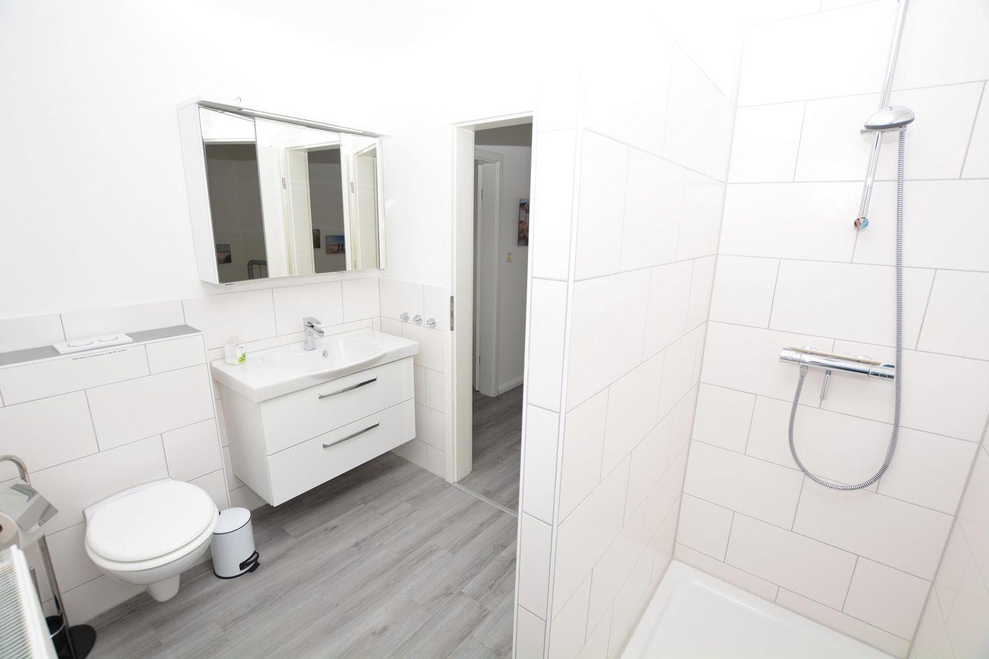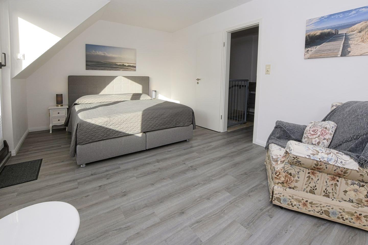 Diese renovierte Ferienwohnung mit hellen, modernen Farben befindet sich ruhig und fußläufig gelegen zur Nordsee. Auch bis in die Innenstadt und zur Familienlagune sind es nur ein paar Gehminuten! Die Fewo (Erdgeschoss und Obergeschoss) ist für maximal 4 Personen (3 Erwachsene und 1 Kind) ausgelegt und hat einen eigenen Eingang. Ein Parkplatz befindet sich direkt vor der Haustür, auch das 2te PKW kann an der Straße parken. Die Schlafräume befinden sich im Obergeschoss. Alle Fenster sind mit Plissees ausgestattet.