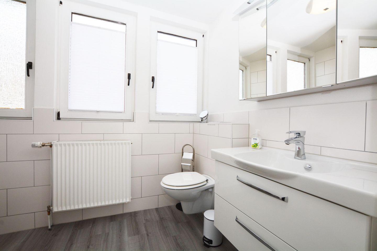 WC, Schrank, Waschbecken, Spiegel, Fenster