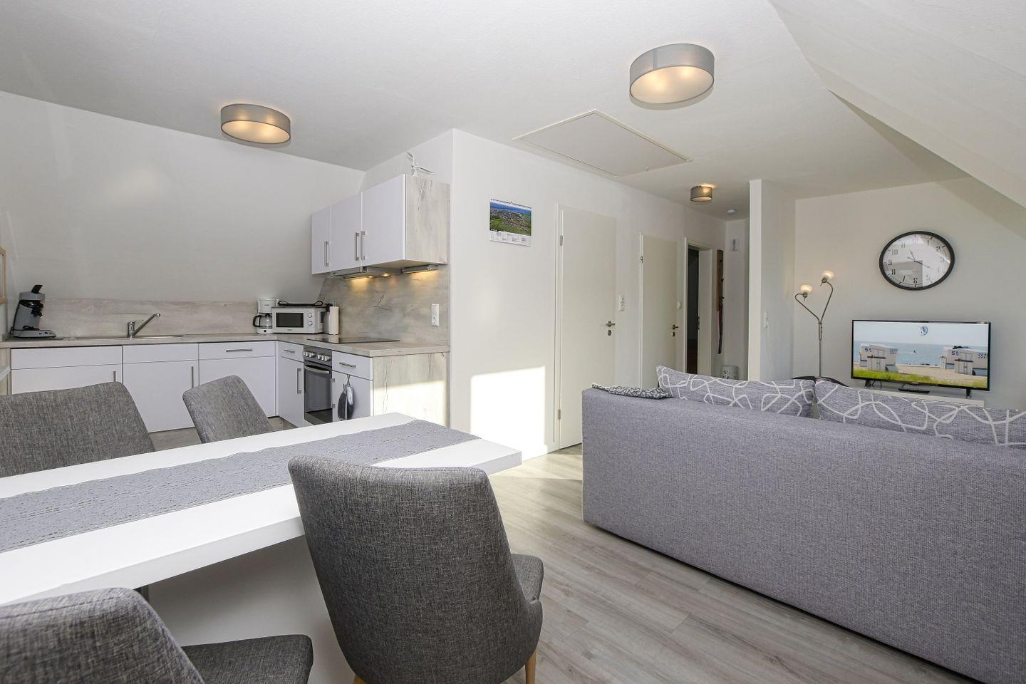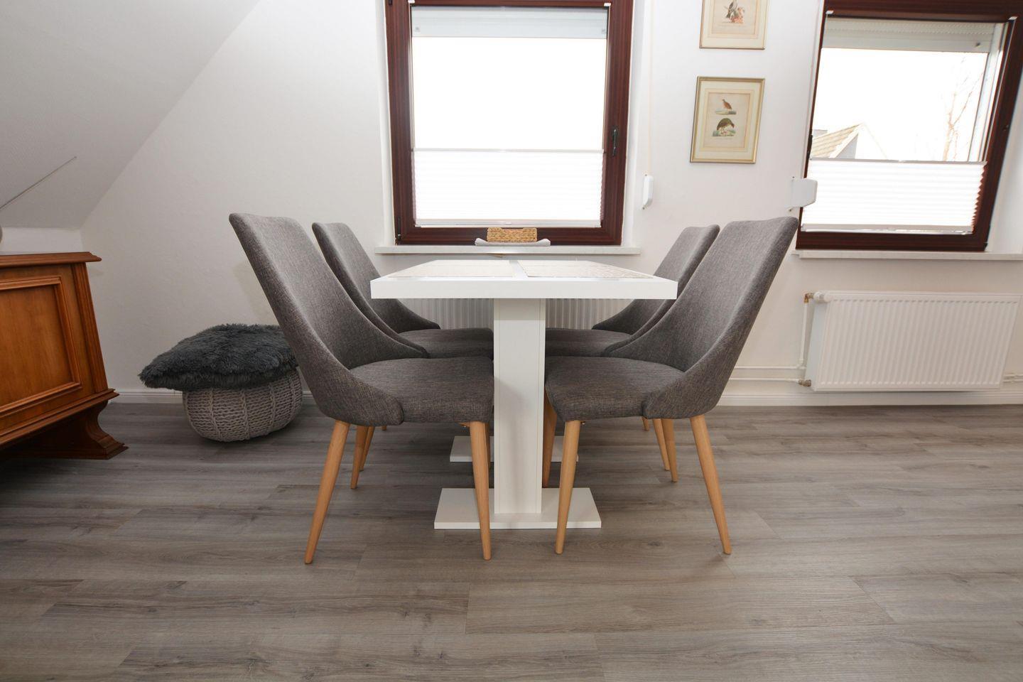 Diese renovierte Ferienwohnung mit hellen, modernen Farben befindet sich ruhig und fußläufig gelegen zur Nordsee. Auch bis in die Innenstadt und zur Familienlagune sind es nur ein paar Gehminuten! Die Fewo im Obergeschoss ist für 2 Erwachsene + 1-2 Kinder ausgelegt. Alle Fenster sind mit Plissees ausgestattet.