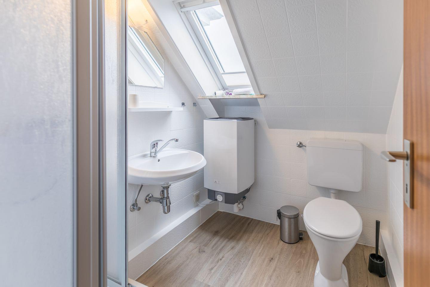 Dusche, WC, Spiegel, Waschbecken, Fenster