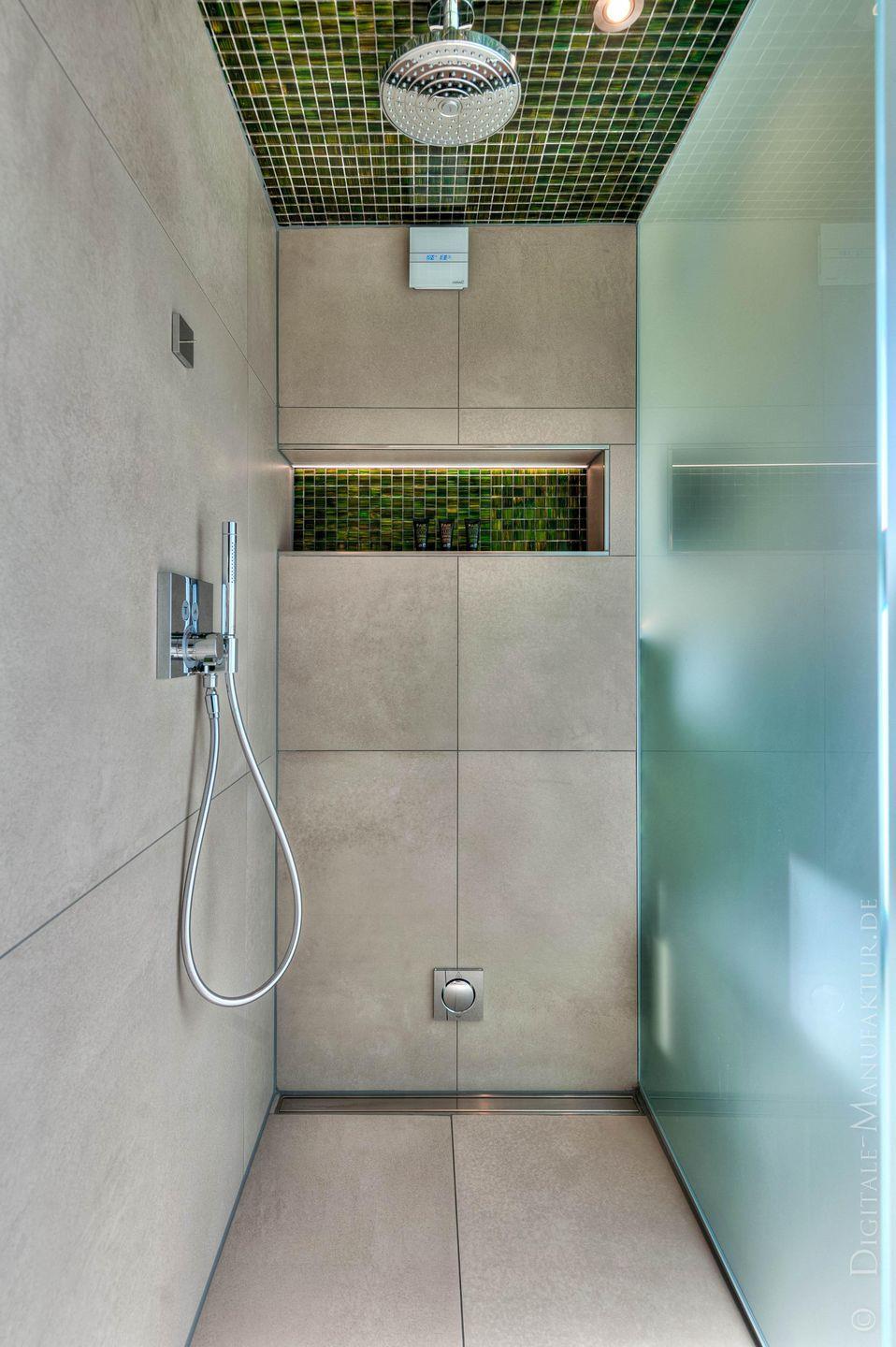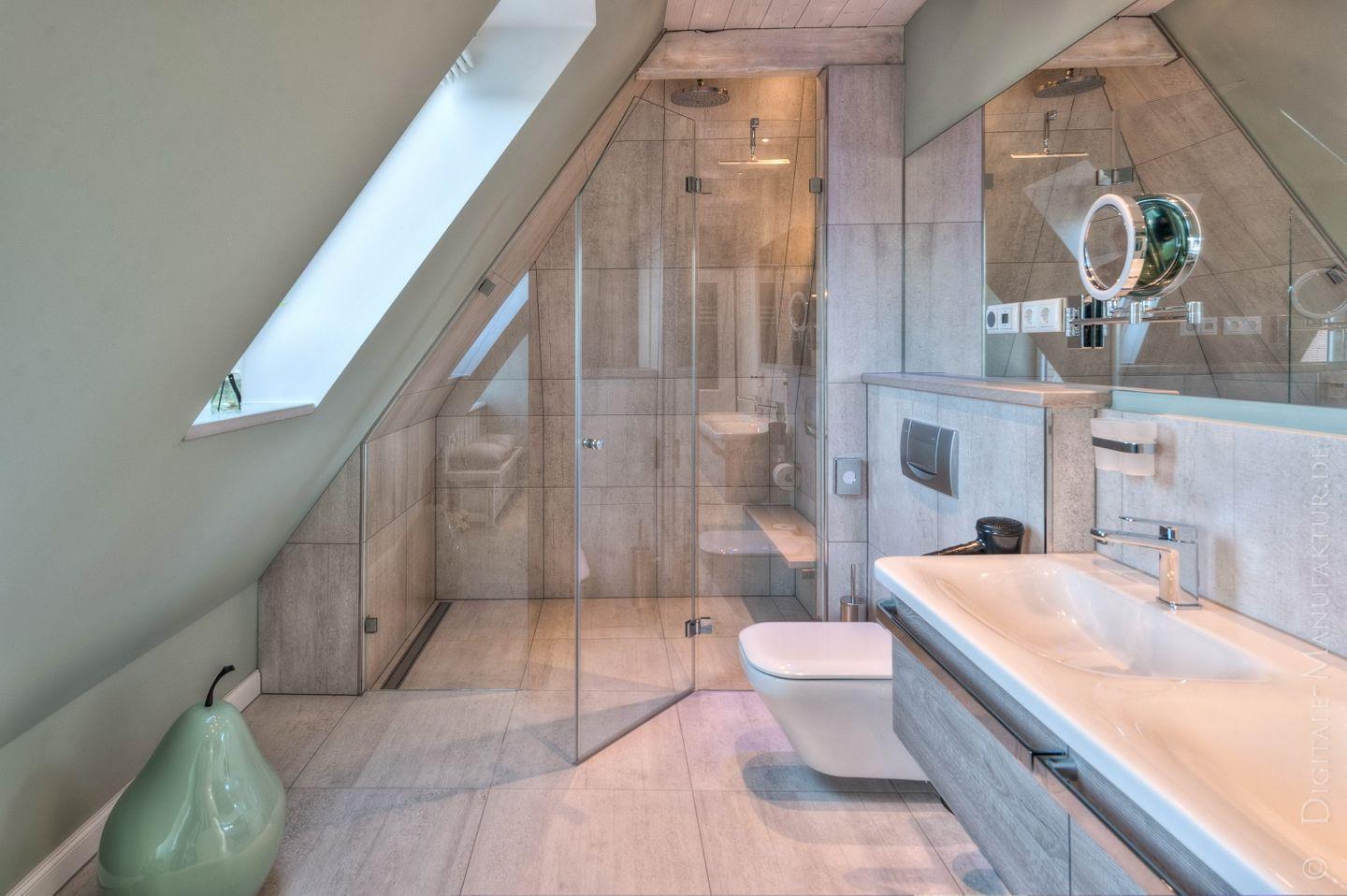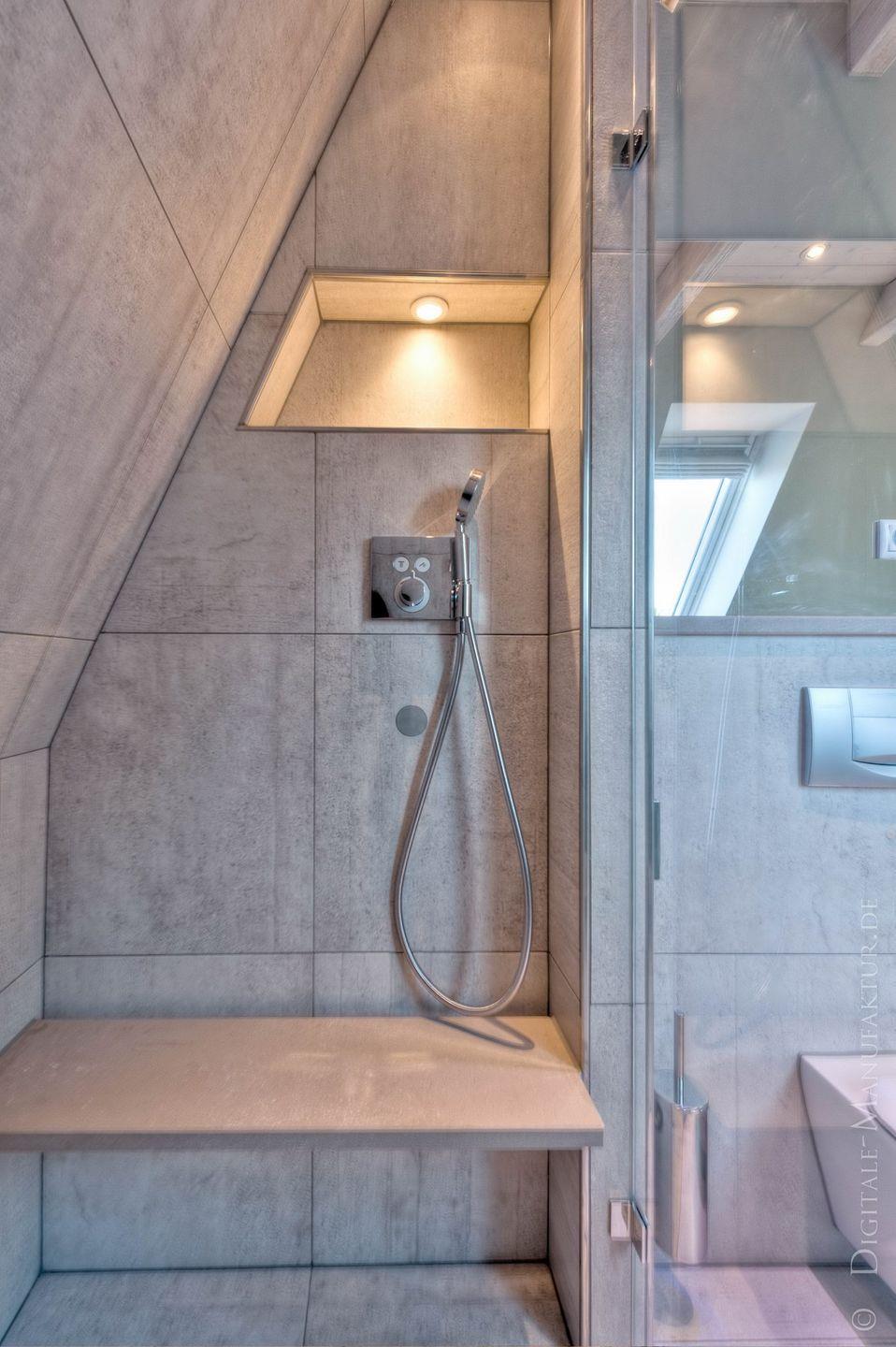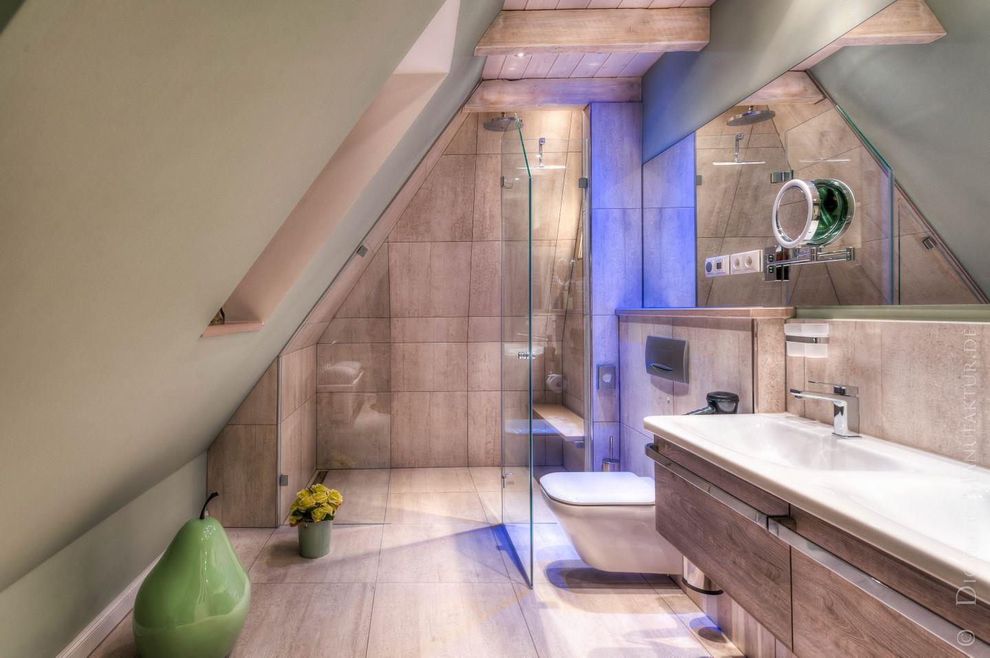 Bad: bodentiefe Walk-In-Dusche mit Sitzgelegenheit, Regenduschkopf, Einzelwaschtisch, beleuchteter Kosmetikspiegel, WC mit Orientierungsleuchte, Handtuchwärmer, Föhn, Fußbodenheizung, Fenster