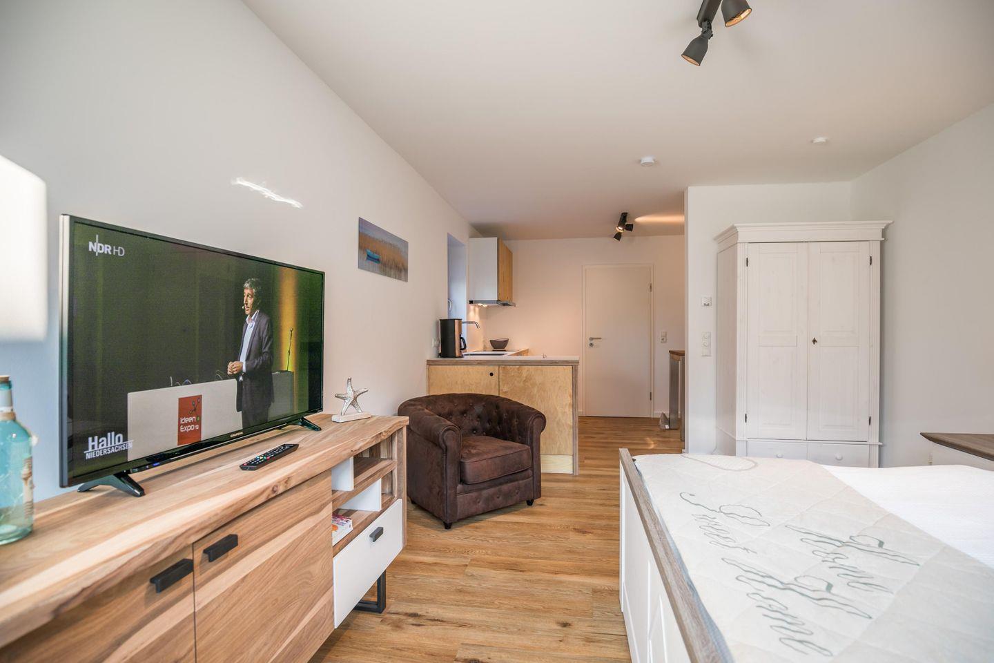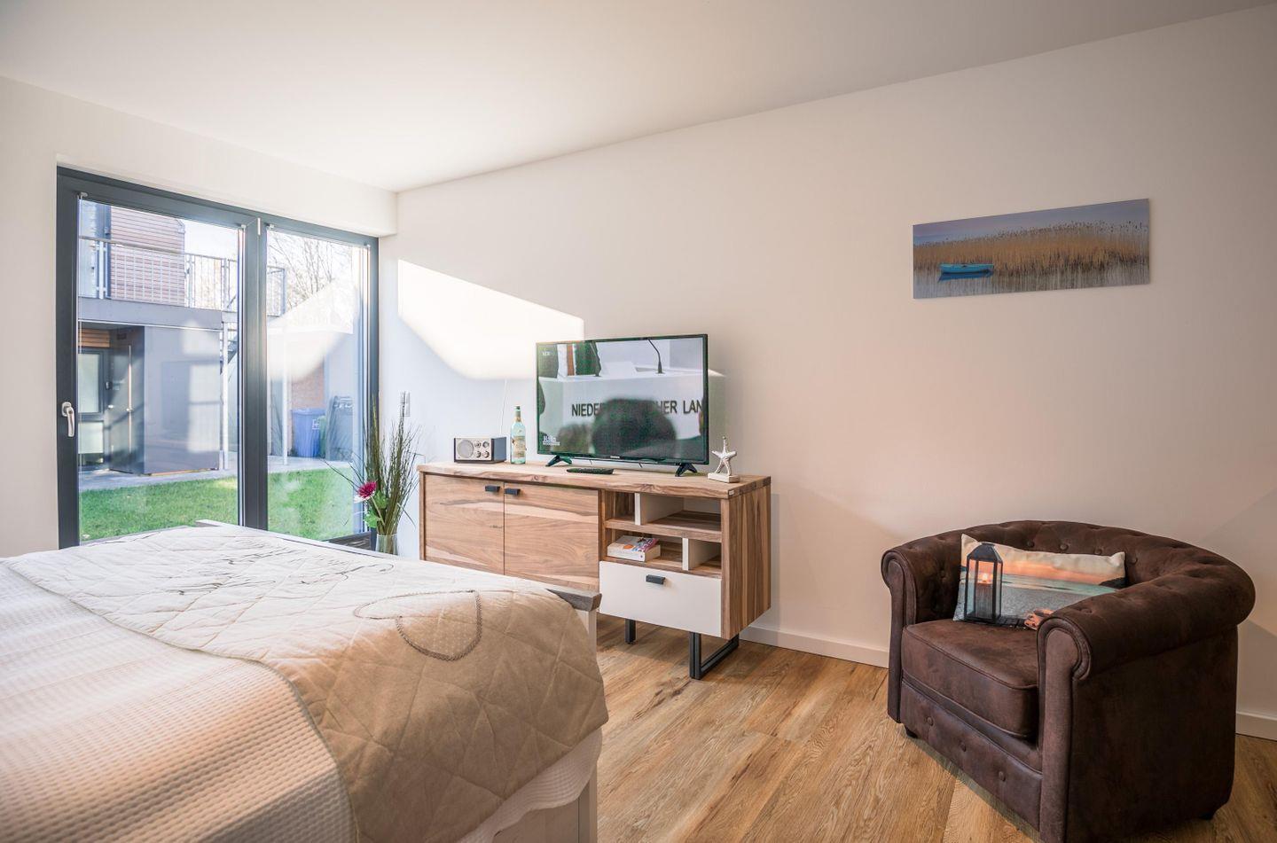 Diese spannende 1,5-Zimmer-Neubauwohnung im holländischen Baustil nutzt das Platzangebot raffiniert und bietet Platz für 2 Personen. Modern und jung präsentiert sich diese Ferienwohnung im Erdgeschoss mit Terrasse.