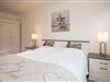 Doppelbett (je 0,90x2,00m) mit Bettkästen, Nachttische + Lampen, Schrank, Fernsehtisch, Flachbild-TV, Sessel, Zugang zur Terrasse, Außenjalousien