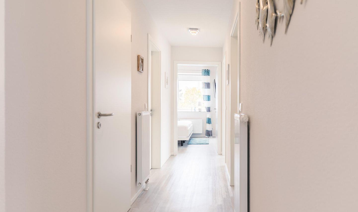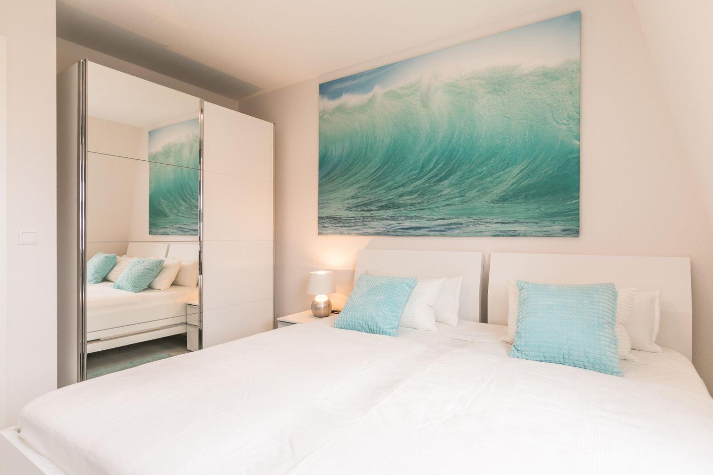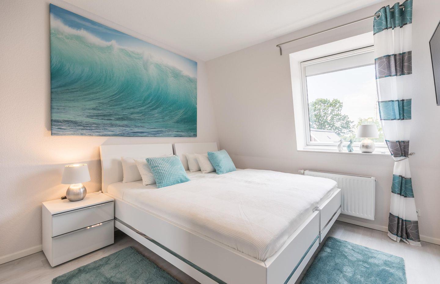 In den beiden Schlafzimmern tragen ruhige, helle Farben und gemütliche Betten zu einem ruhigen Schlaf bei. Im Wohnraum befindet sich ein modernes Schrankbett.