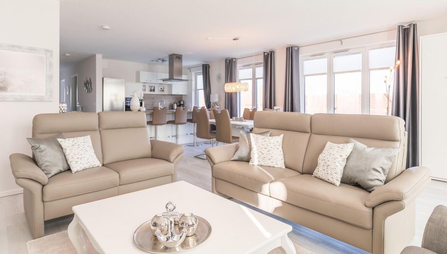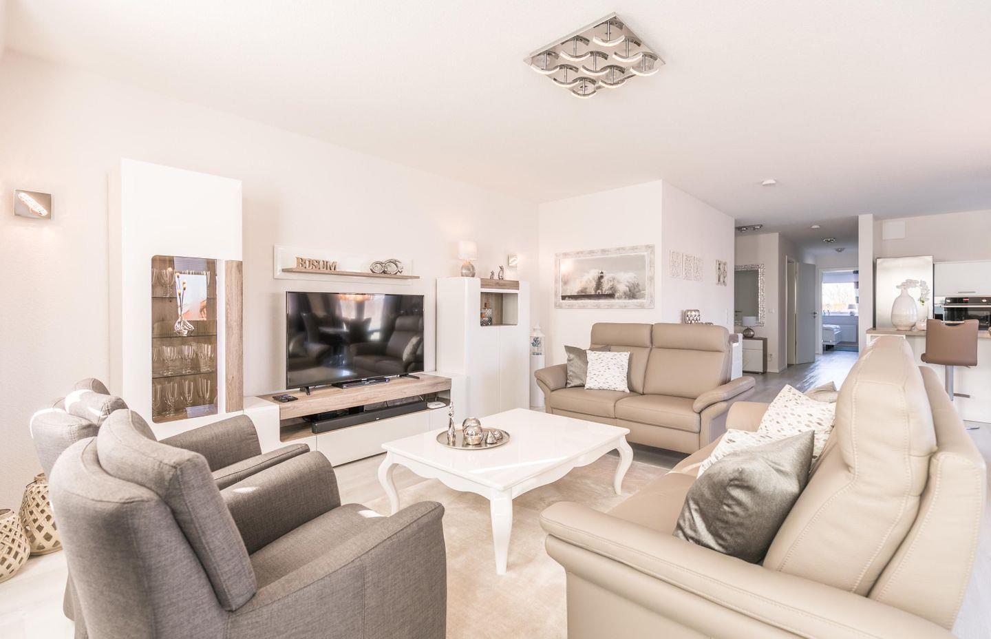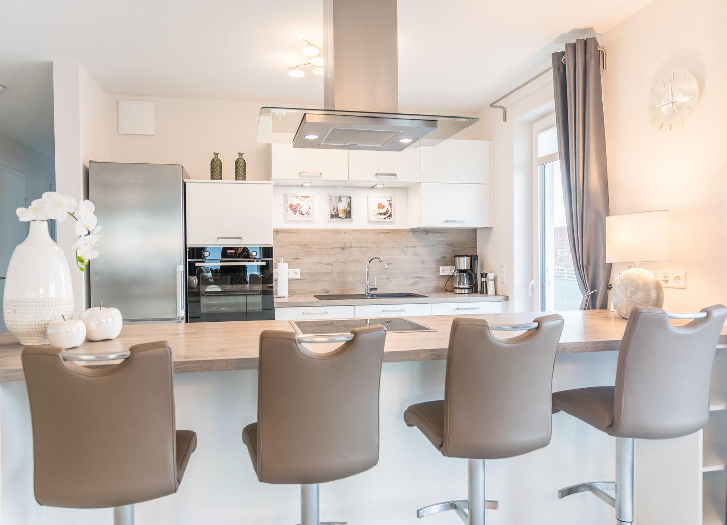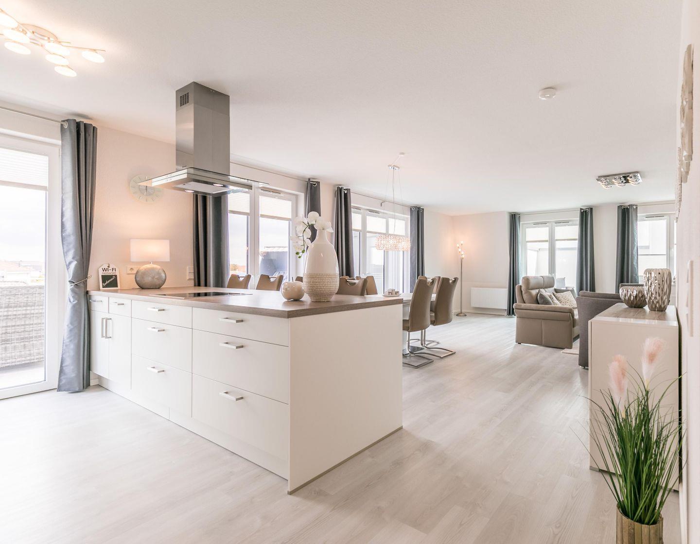 Der zur Küche offene Wohnraum bietet viel Platz und lädt zum gemeinsamen Verweilen ein. Für ausreichend Entertainment sorgt der große Flachbild-TV mit Blu-Ray-Player. Aber auch gemütliche Kochabende sind in der voll ausgestatteten Küche mit Tresen und Barhockern - eine willkommene Abwechslung. Durch die verschiedenen Dachterrassen können Sie praktisch zu jeder Tageszeit ein paar Sonnenstrahlen genießen!