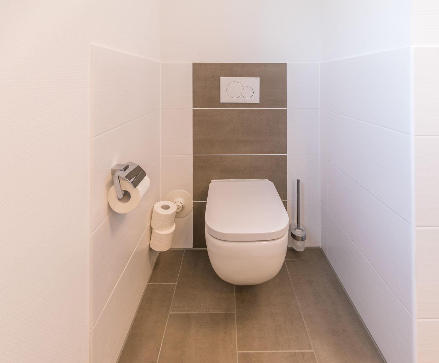 Bodentiefe Dusche, Doppelwaschbecken mit Unterschrank, Spiegel, Fenster mit Plissee, Abluft, WC, Fußbodenheizung, Handtuchtrockner