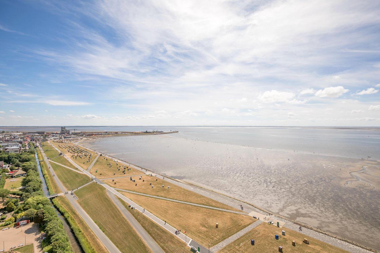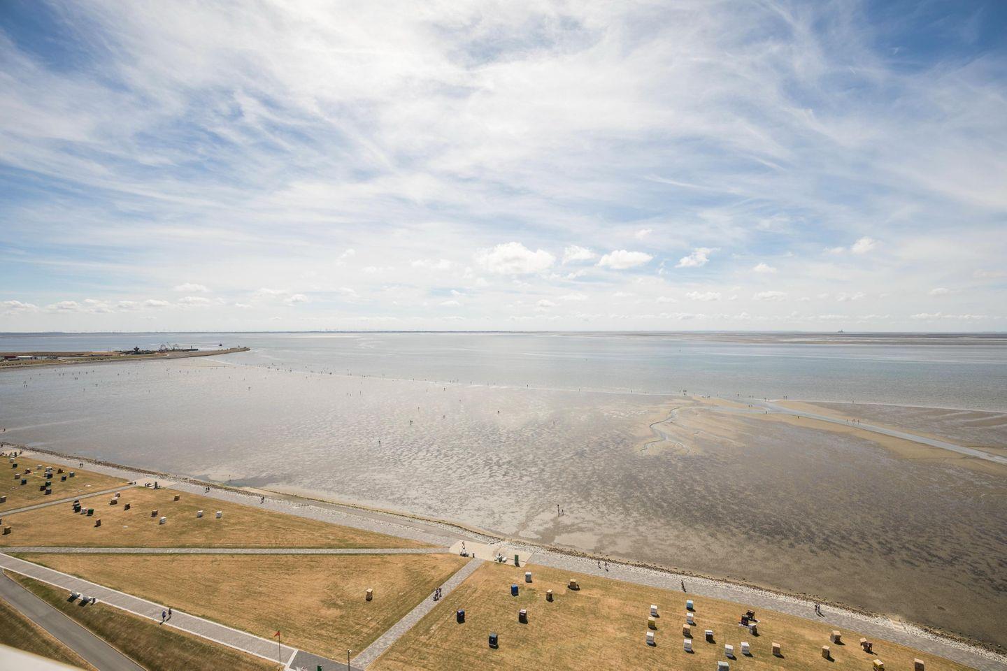 Die Allergiker freundliche Ferienwohnung "Leuchtfeuer" in Südlage mit großem Balkon (sicht- und windgeschützt) und uneingeschränktem Meerblick befindet sich in der 20. Etage des Hochhauses am Kurpark. Von hier aus können Sie den einmaligen Blick über die gesamte Dithmarscher Bucht schweifen lassen.