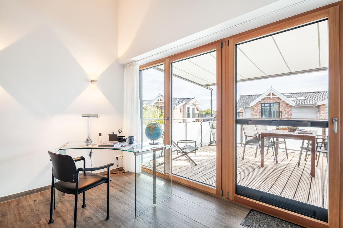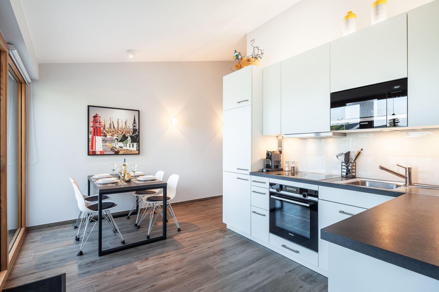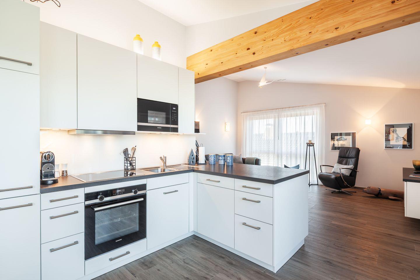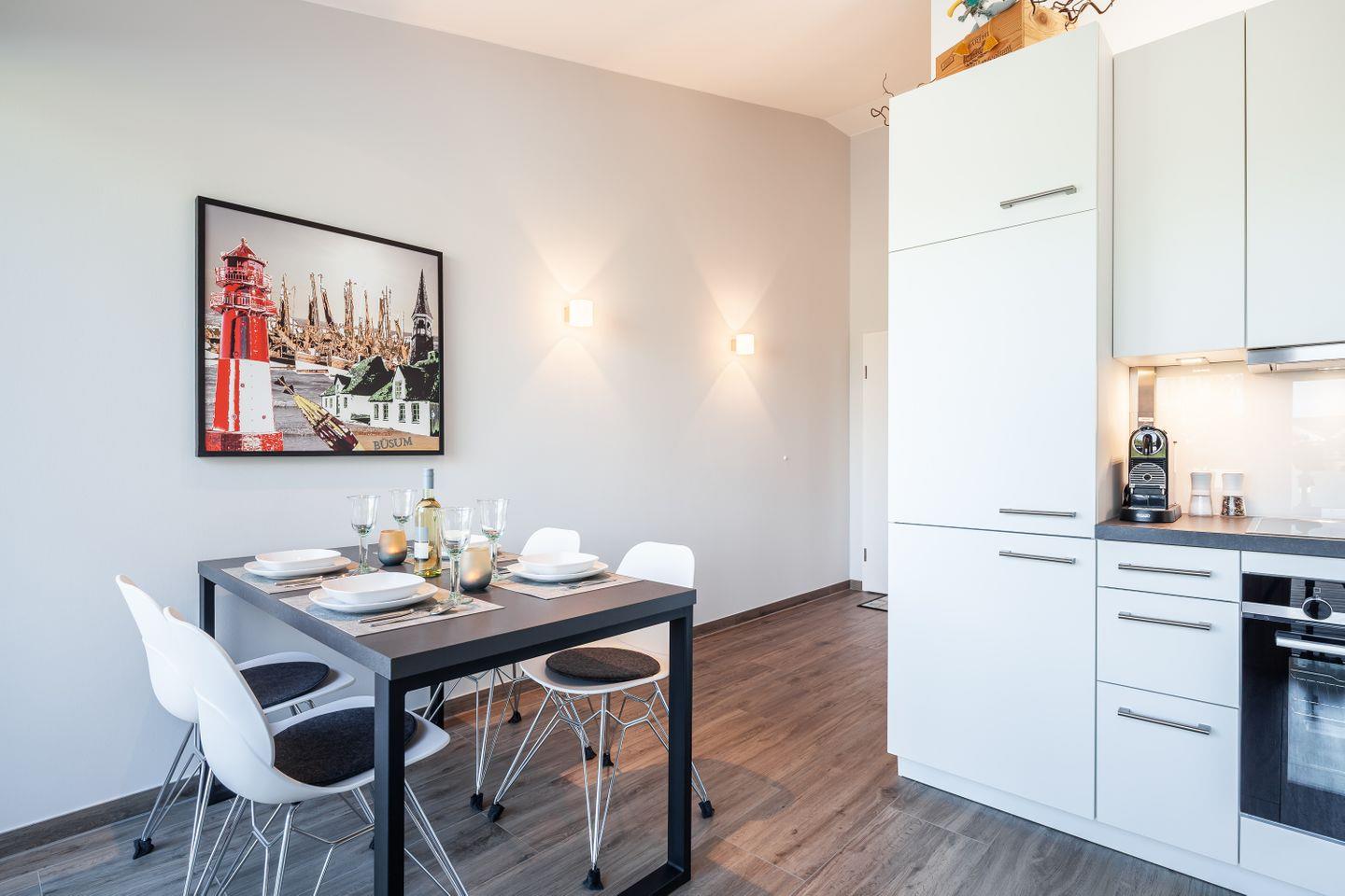 Unweit des Hafens genießen Sie im Penthouse „Admiral“ lichtdurchflutete Räume und viel Platz für vier Personen: Der offene Wohn-/Essbereich führt auf den Balkon; die große Dachterrasse wird zu Ihrem zweiten Wohnzimmer an der Nordseeluft.