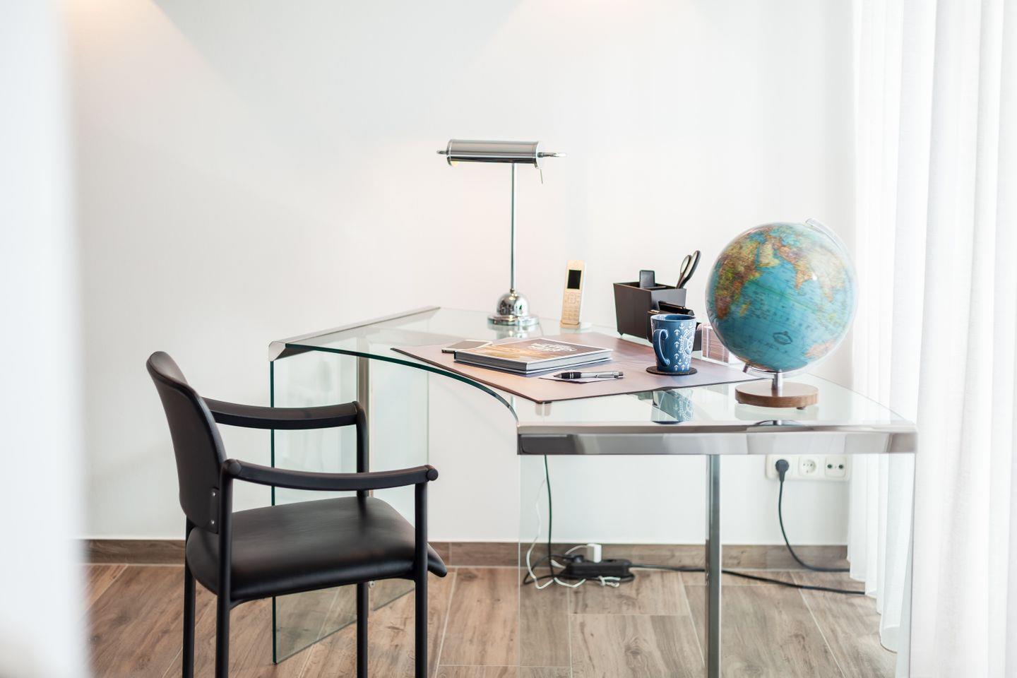 Fußbodenheizung in der kompletten Wohnung, allergikerfreundlich, WLAN, Bücher, Garderobe, Spiegel, Fahrstuhl, 1 kostenloser Parkplatz, möblierte Dachterrasse mit elektrischer Markise, Waschmaschine im Keller, Gegensprechanlage, Einbautresor, Home Office mit all-In-One-Druckgerät (Drucker, Scanner, Kopierer), Telefon mit Flatrate,