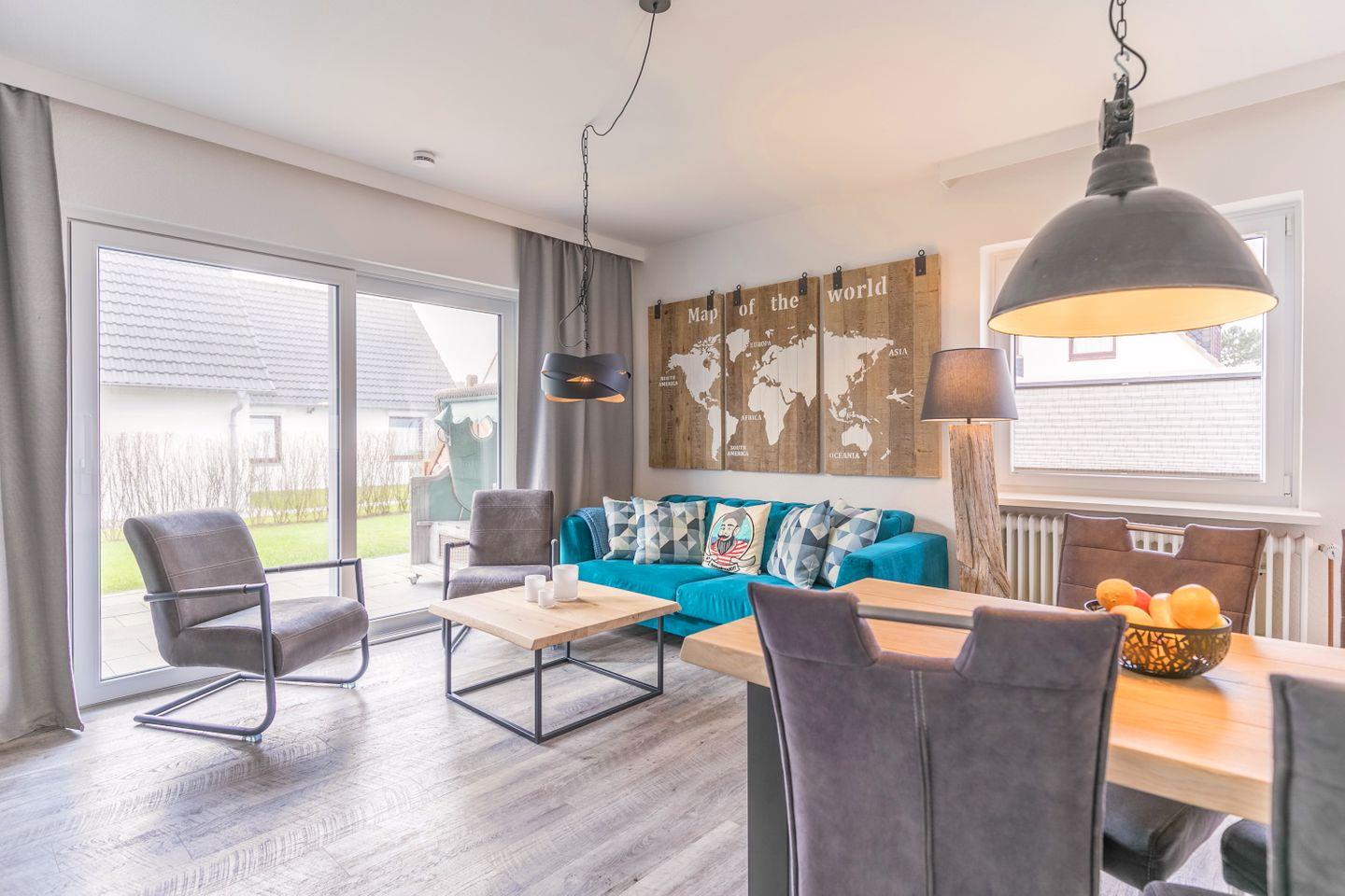 Die Wohnung 1 befindet sich im Erdgeschoss und hat einen eigene Terrasse samt Gartenmöbeln sowie hochwertigem, großen Strandkorb.