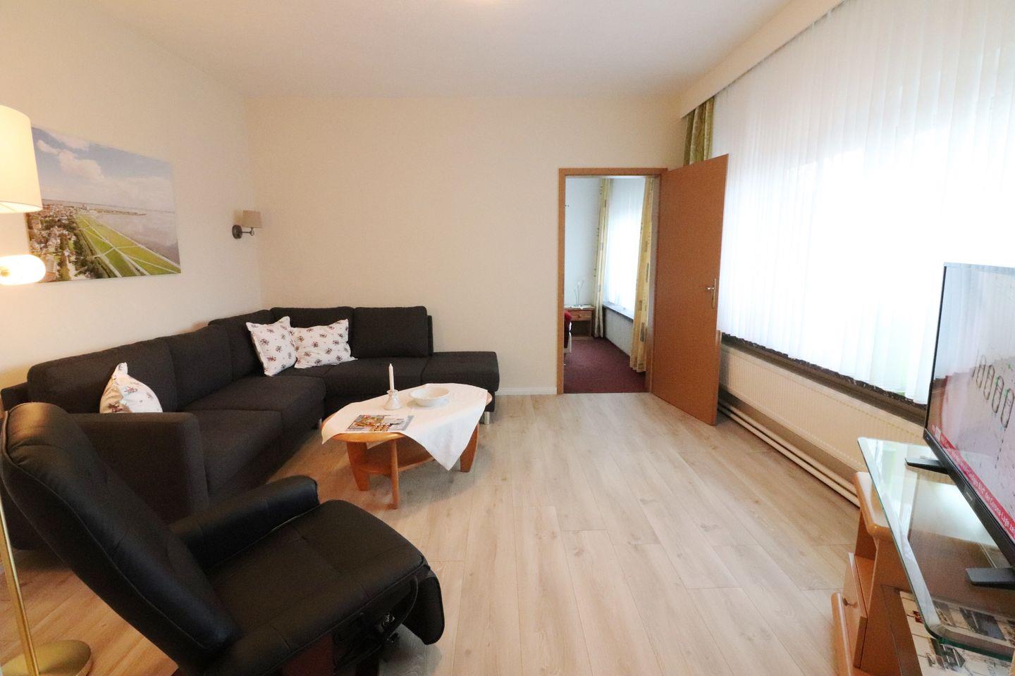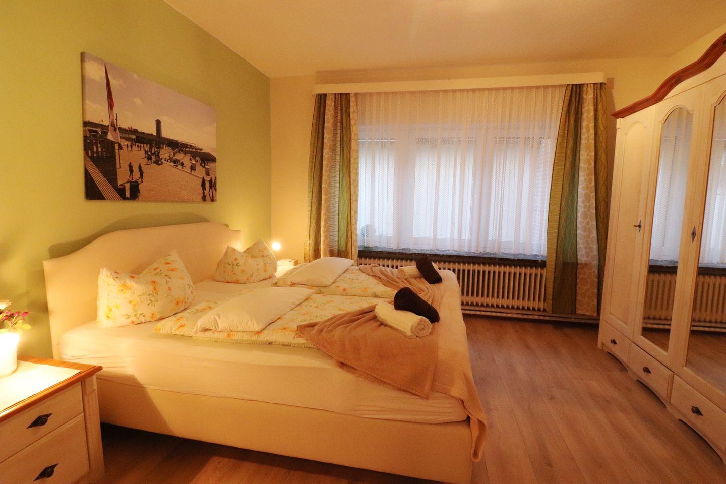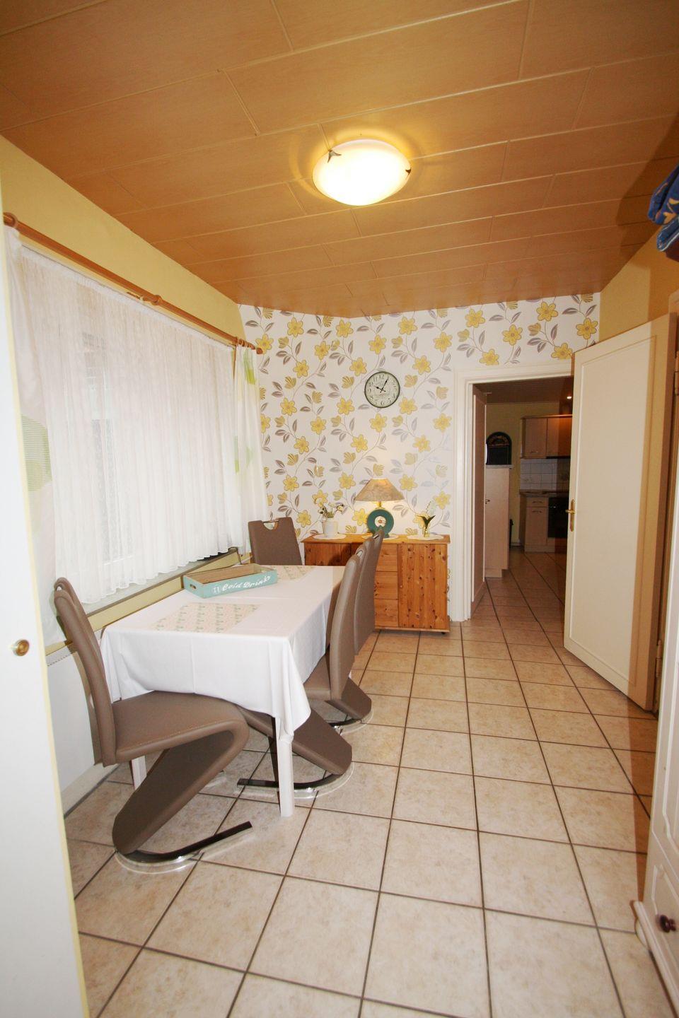 Unsere großzügige 3-Zimmer-Erdgeschosswohung bietet auf 85 m² genug Platz für die ganze Familie. Ihnen stehen zwei Schlafzimmer mit Doppelbetten, ein Wohnzimmer, Esszimmer, Duschbad und eine separate Küche mit Geschirrspüler, Heißluftherd mit Ceran-Kochfeld und Mikrowelle zur Verfügung. Toaster, Wasserkocher, Kaffeemaschine, Geschirr für den täglichen Gebrauch und eine Waschmaschine stehen ebenfalls zur Verfügung.