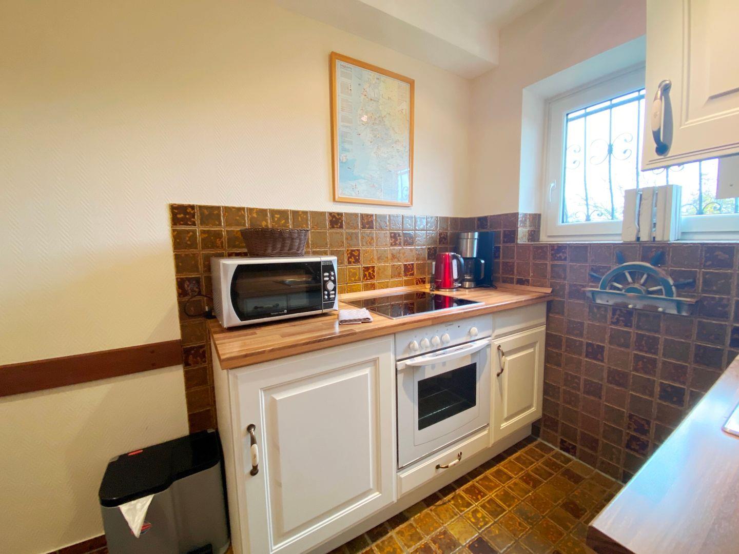Die voll ausgestatte Küche verfügt über einen Geschirrspüler, Backofen und Mikrowelle.