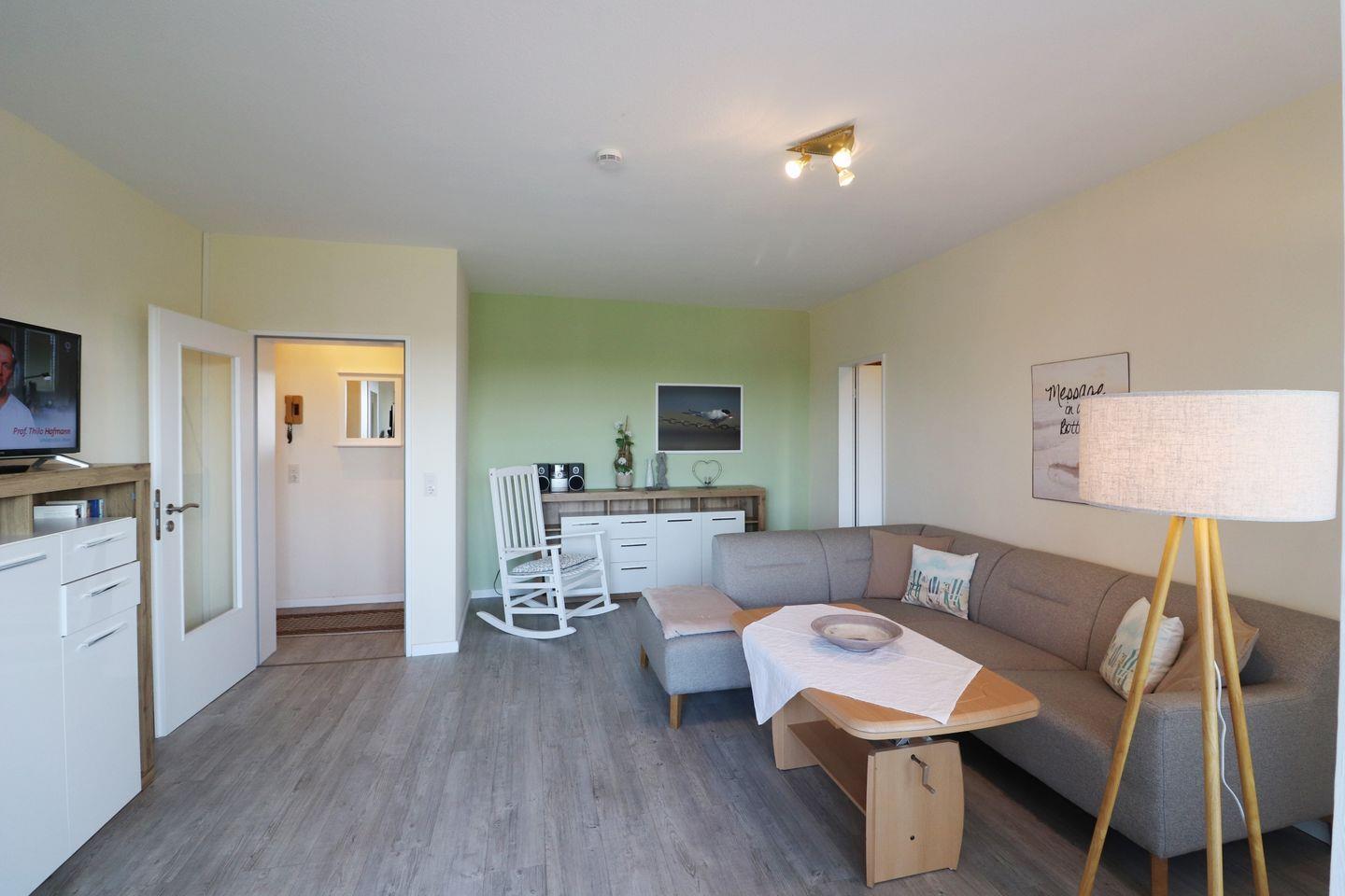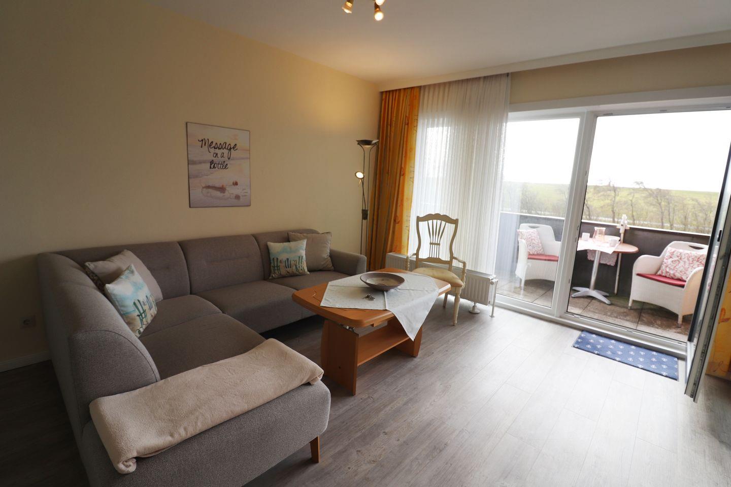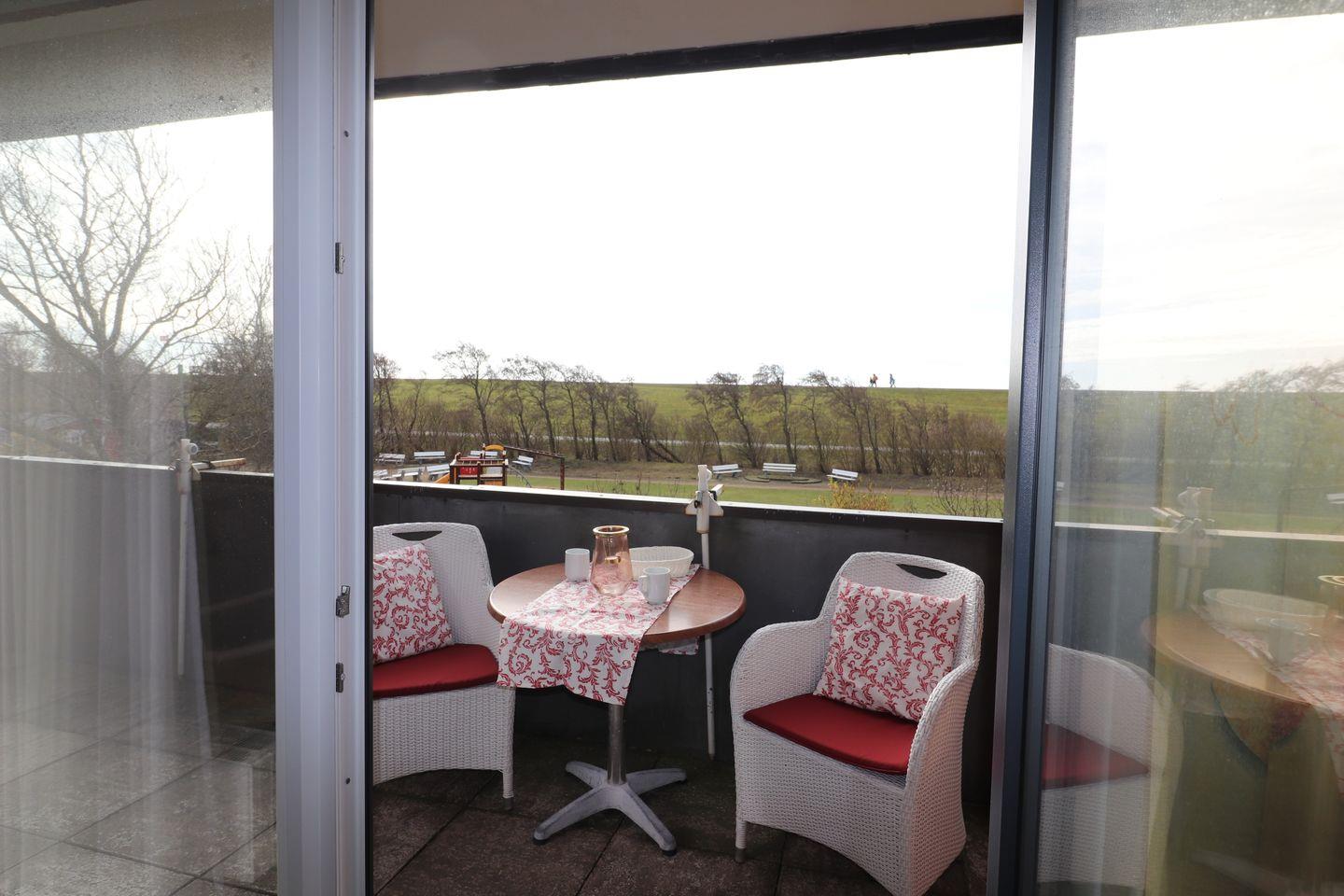 Die ruhige Lage hinter dem Deich macht diese Wohnung zu einer perfekten Wahl für einen entspannten Urlaub.