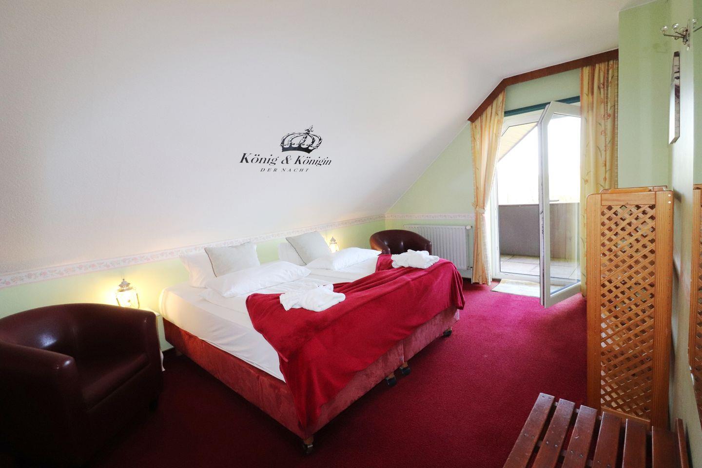 mit einer gemütlichen Sitzecke und einem Balkon zur Seeseite mit Blick in den Kurpark, auf dem Sie morgens Ihren Kaffee genießen oder