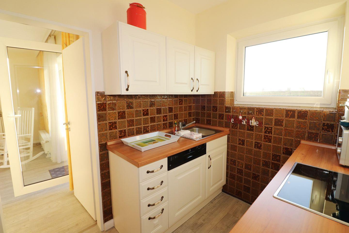 Die voll ausgestatte Küche verfügt über einen Geschirrspüler, Backofen und einer Mikrowelle.