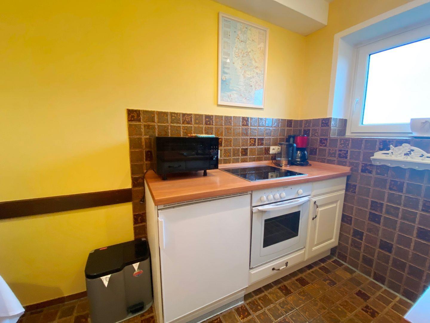 In der separaten Küche befindet sich eine gemütliche Sitzecke. Die Küche ist ausgestattet mit Herd, Backofen, Spülmaschine und Mikrowelle und allen wichtigen Utensilien für die Selbstverpflegung.
