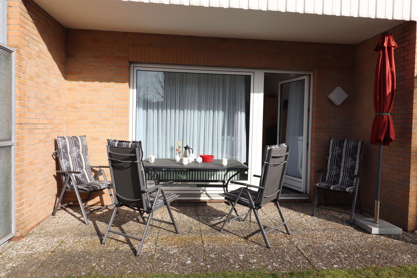 3 Raum-Wohnung für bis zu 5 Pers., 2 Schlafzimmer mit je einem Doppelbett + Zusatzbett in einem der Schlafzimmer, Parterre mit Terrasse, Wlan, 2 Bäder, Haustiere auf Anfrage