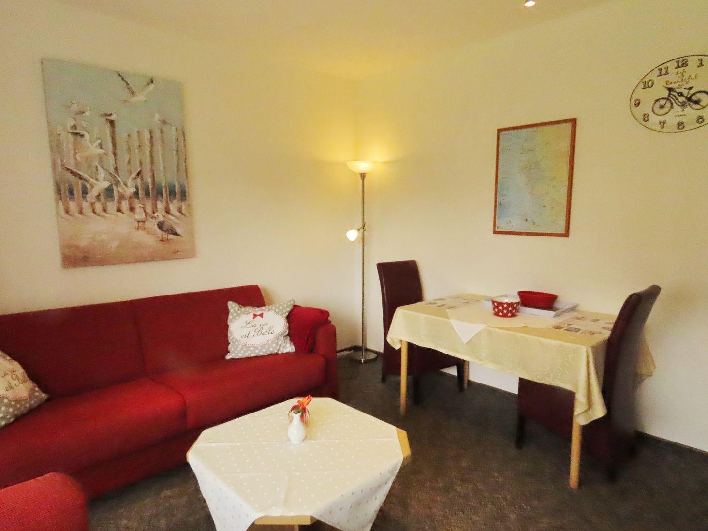 2-Raum-Wohnung für bis zu 4 Pers. (max. 2 Erwachsene und 2 Kinder), 1 Schlafzimmer + Schlafsofa im Wohnzimmer, Parterre mit Terasse, Wlan, 1 Duschbad, Haustiere auf Anfrage