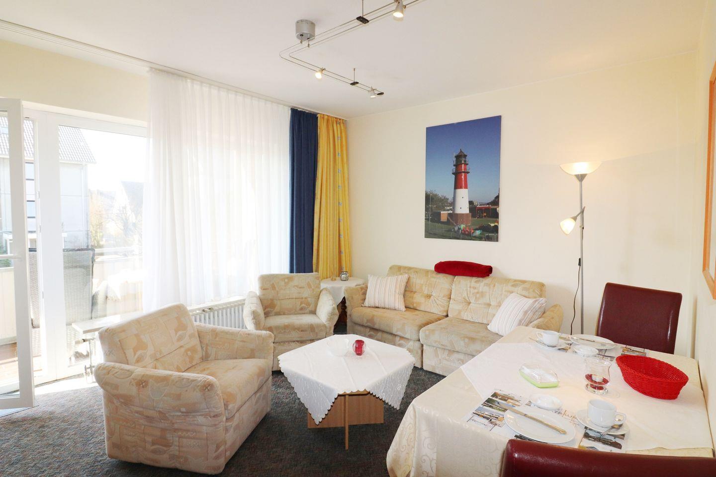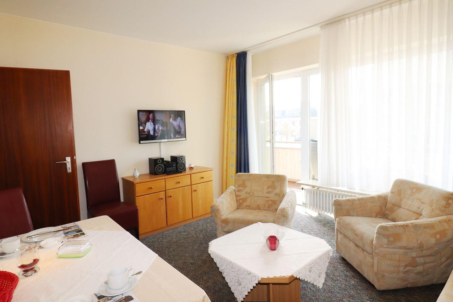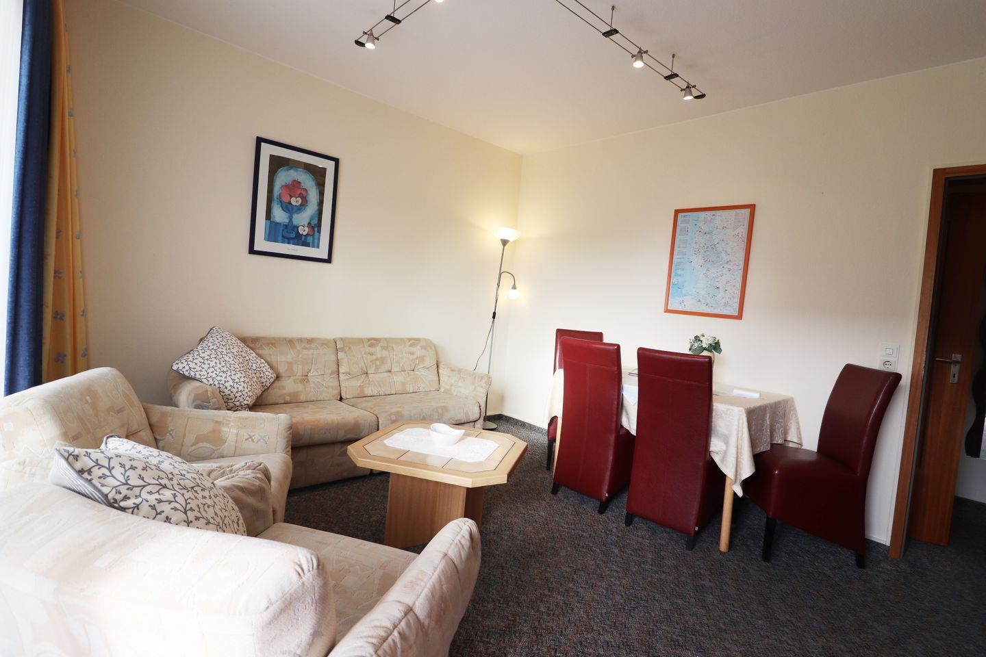 2-Raum-Wohnung für bis zu 4 Pers., 1 Schlafzimmer + 1 Schlafsofa im Wohnzimmer (max. 2 Erwachsene und 2 Kinder), 1. Stock mit Balkon, Wlan, 1 Duschbad